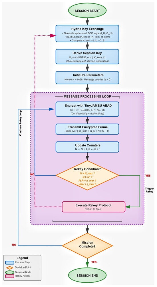 - Authenticated Encryption (AEAD): For symmetric data protection, TinyJAMBU-128 is employed, configured with a 128-bit state and 128-bit key, using frame permutations . The Additional Authenticated Data (AD) field ensures integrity of control messages and is defined as: