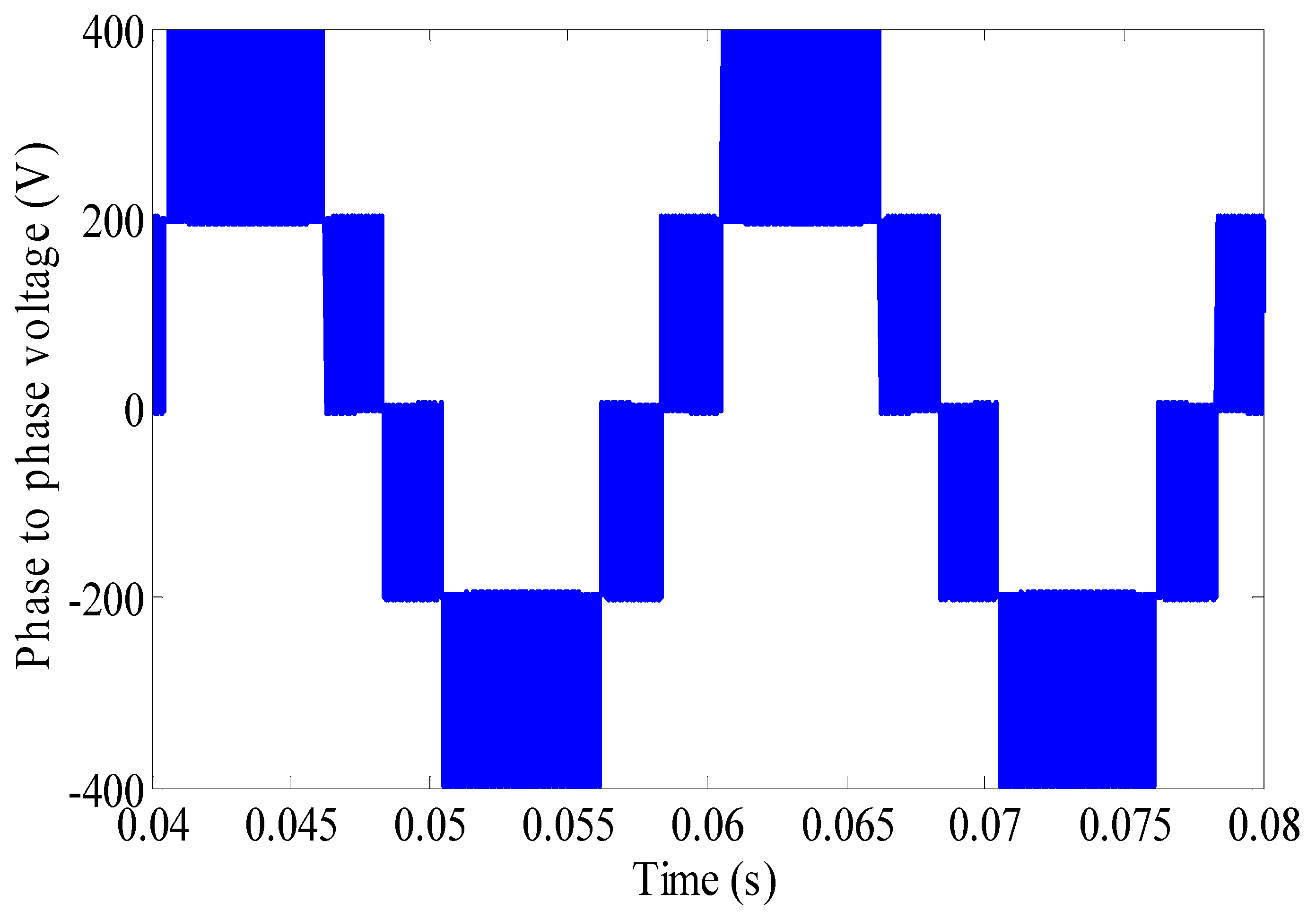 - Elbeji, O.; Boussada, Z.; Ben Hamed, M. Inverter control: Comparative study between SVM and PWM. In Proceedings of the 2017 International Conference on Green Energy Conversion Systems (GECS), Hammamet, Tunisia, 23–25 March 2017; IEEE: New York, NY, USA, 2017; pp. 1–6. [Google Scholar]
