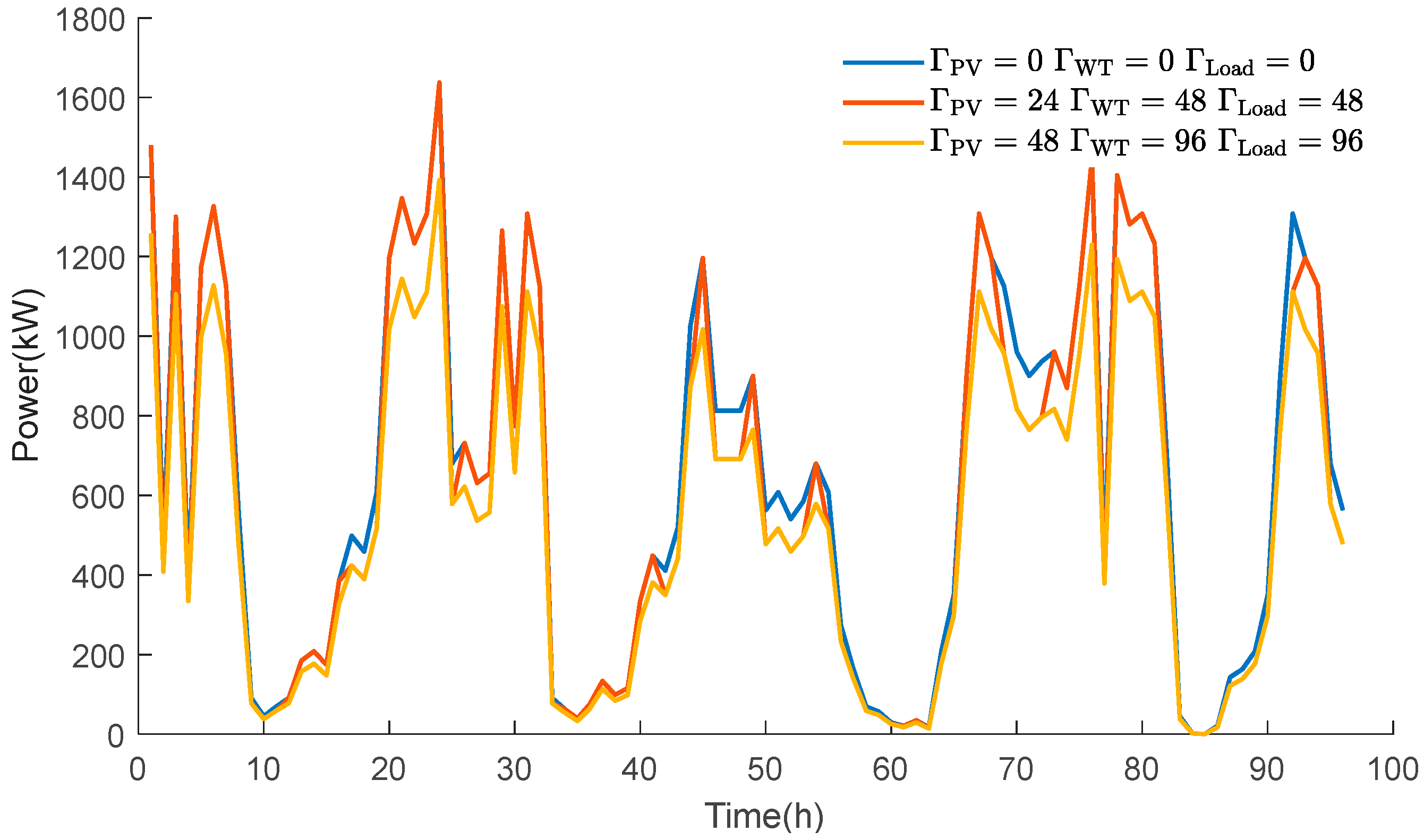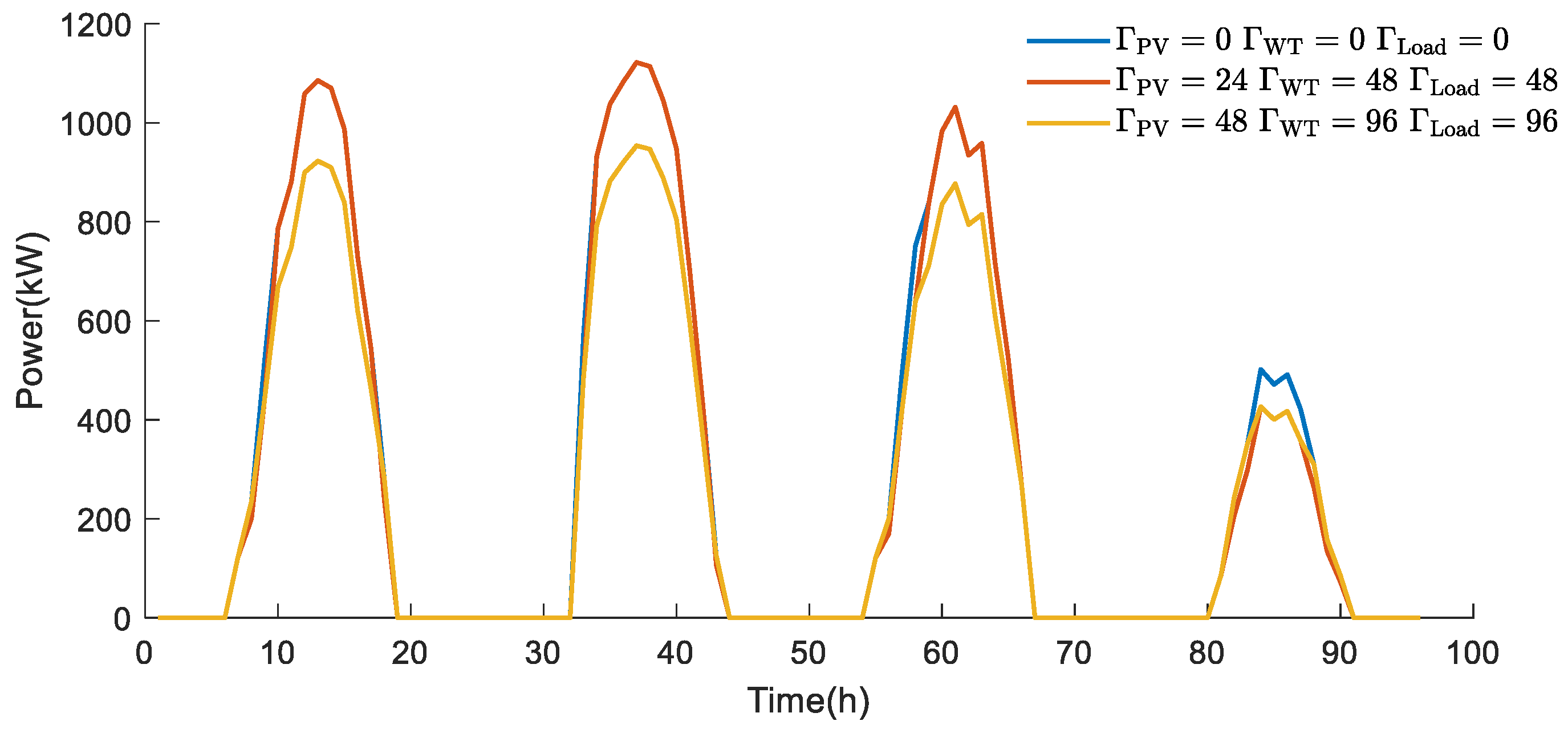 In this case study, it is assumed that 20% of the microgrid’s load is shiftable. The unit compensation coefficient cDR is set to 0.5 CNY/kWh. The maximum power for load shifting in or out at any time is set to 15% of the forecasted total load for that period. These parameters are intended to simulate a moderately active demand response program.