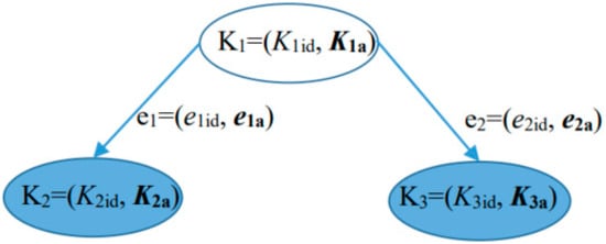 In a teaching knowledge graph GK = (V, E, AV, AE, A, E), consider an entity K1 = (K1id, K1a) V that has a connecting relation e1 = (e1id, e1a) with entity K2 = (K2id, K2a) V, and another connecting relation e2 = (e2id, e2a) with entity K3 = (K3id, K3a) V, where {K1a, K2a, K3a} AV and {e1a, e1a} AE. If the attribute values of the entities satisfy K2a = K3a and the attribute values of the connecting relations satisfy e1a = e2a, then entities K2 and K3 are said to exhibit central symmetry, denoted as K2 K3. As shown in Figure 2.