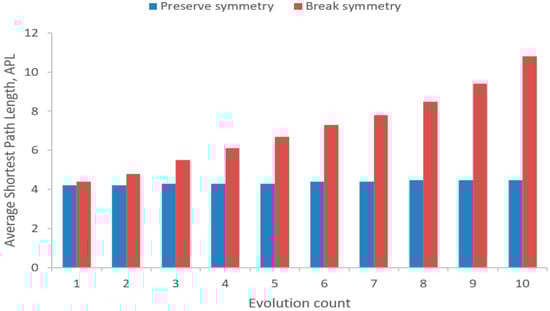 To evaluate whether evolution operations that preserve symmetry maintain the structural properties of knowledge graphs better than those that break symmetry, and thus provide a more robust basis for knowledge organization in educational applications, we constructed a simulated educational knowledge graph with 500 nodes. This graph was designed to evenly distribute nodes exhibiting entity connection symmetry, entity central symmetry, entity mirror symmetry, and structural symmetry, ensuring diversity among symmetric node types. We then conducted two groups of experiments: one group applied symmetry-preserving operations and the other applied symmetry-breaking operations. Each group performed 10 rounds of evolution, with each round randomly selecting one type of symmetric node for modification. After each evolution step, we evaluated both the connectivity and the path complexity of the knowledge graph.