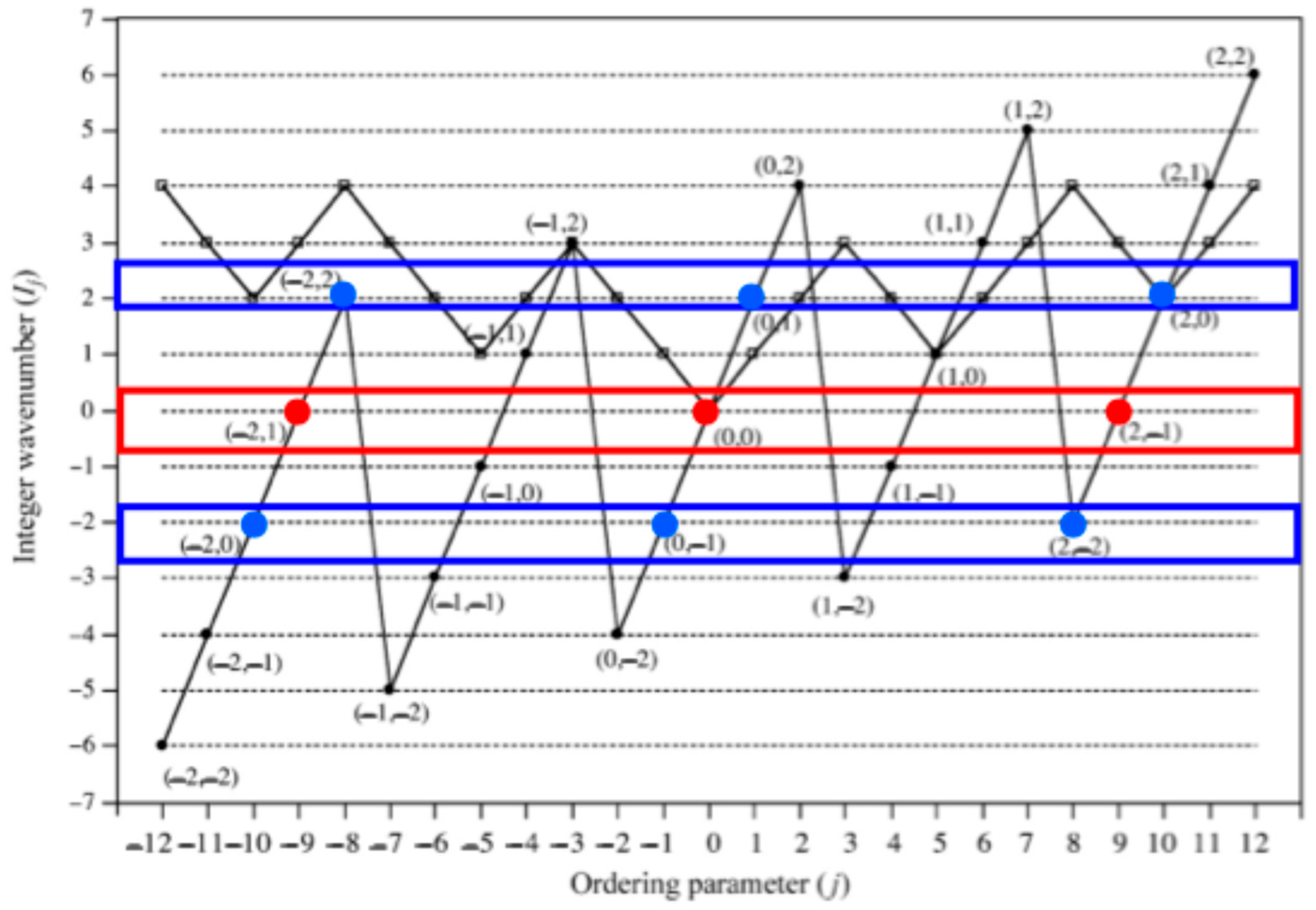 because the wave numbers are commensurable (corresponding to spatial periodicity). Each dot product reduces to a wave number in the “basis set” of commensurable wave numbers,