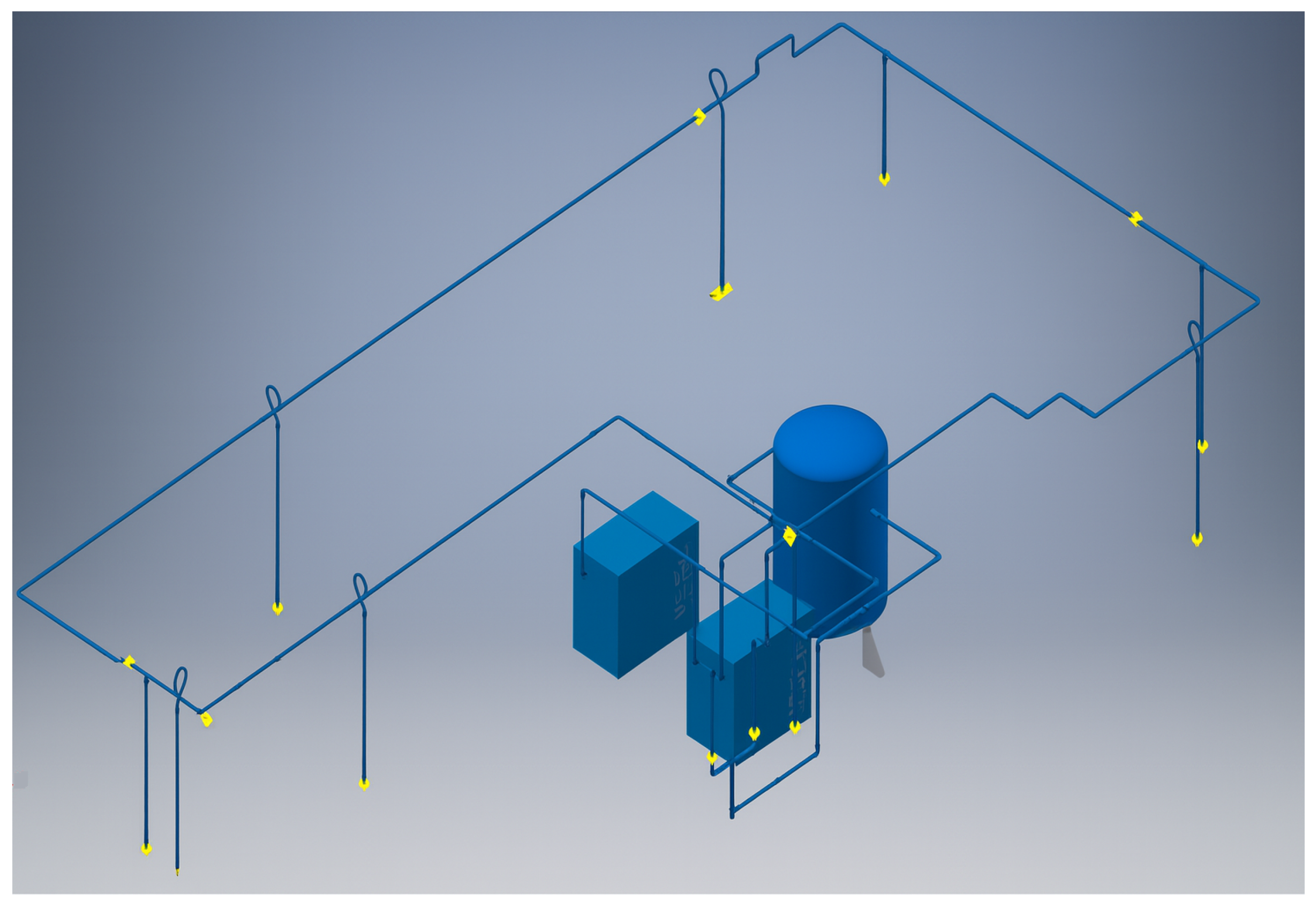 Figure 2 shows a scaled schematic of the compressed air system modeled in Autodesk Inventor Professional 2017 [