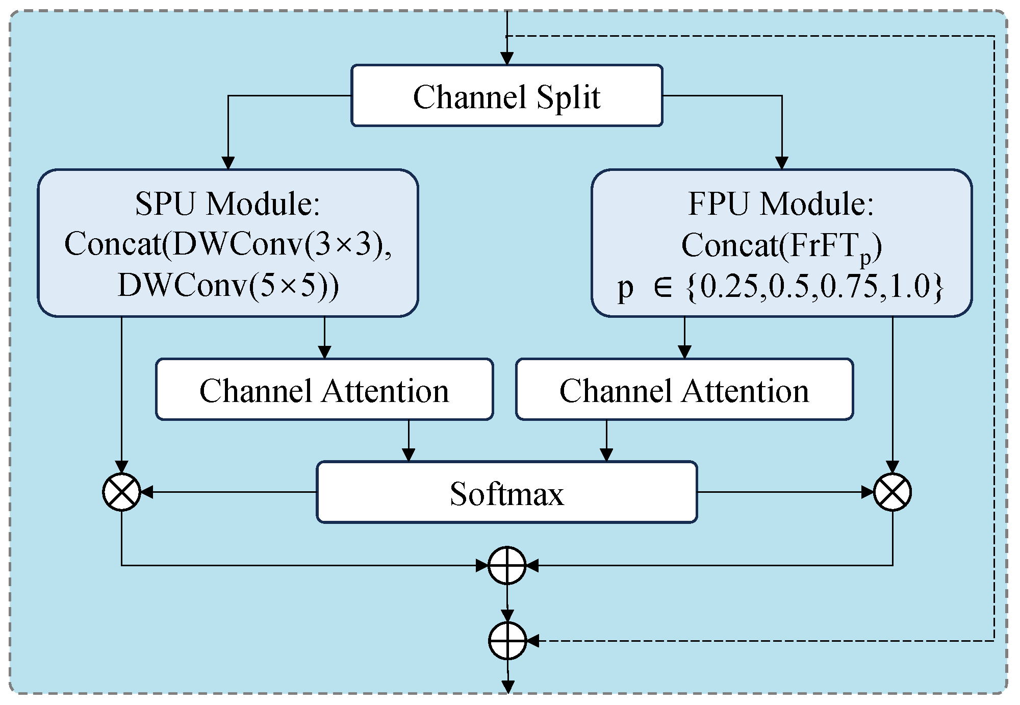 Computational complexity comparison of different convolution modules. H, W, and C denote the height, width, and number of channels, respectively. K is the number of multi-order FrFT branches.
