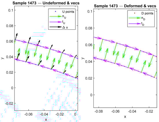 - Extraction of geometric cues: including displacement differences, normals, tangents, and curvature along boundaries, to enrich input features. Curvature was initially evaluated as part of the geometric feature set; however, subsequent analysis showed that its numerical sensitivity reduced feature consistency across samples. It was therefore considered in the early stages but ultimately excluded from the final model.