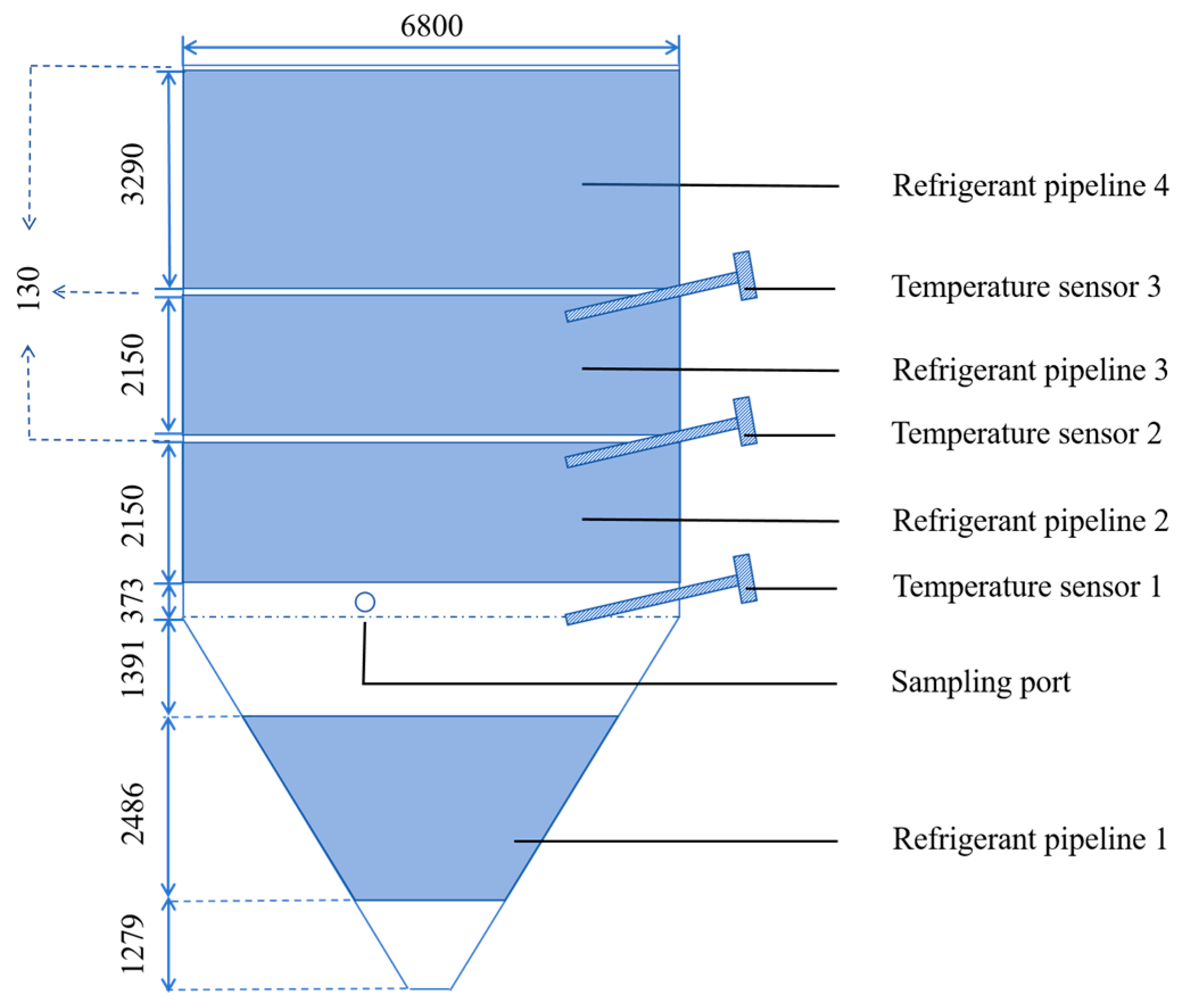 3. Although these large-scale fermenters significantly enhance production capacity, they also pose new challenges in terms of temperature control and monitoring. To facilitate effective cleaning and sterilization, conical fermenters are generally designed without complex internal structures. This design feature, however, limits the installation of temperature measurement equipment, which is usually restricted to the tank wall. The fermentation system operates like a “black box”, where operators have to adjust cooling valves based solely on limited wall temperature data while observing subsequent changes in wall temperature. This information asymmetry often results in delayed responses and suboptimal control strategies. Furthermore, the cooling jackets used for regulating fermentation temperature need to be positioned at an appropriate distance from temperature sensors to avoid interference, further complicating the precise monitoring of temperature changes throughout the fermentation process. Research findings indicate that temperatures vary at different depths, including the wall surface, 0.5 m within the wall, and 1.0 m within the wall [