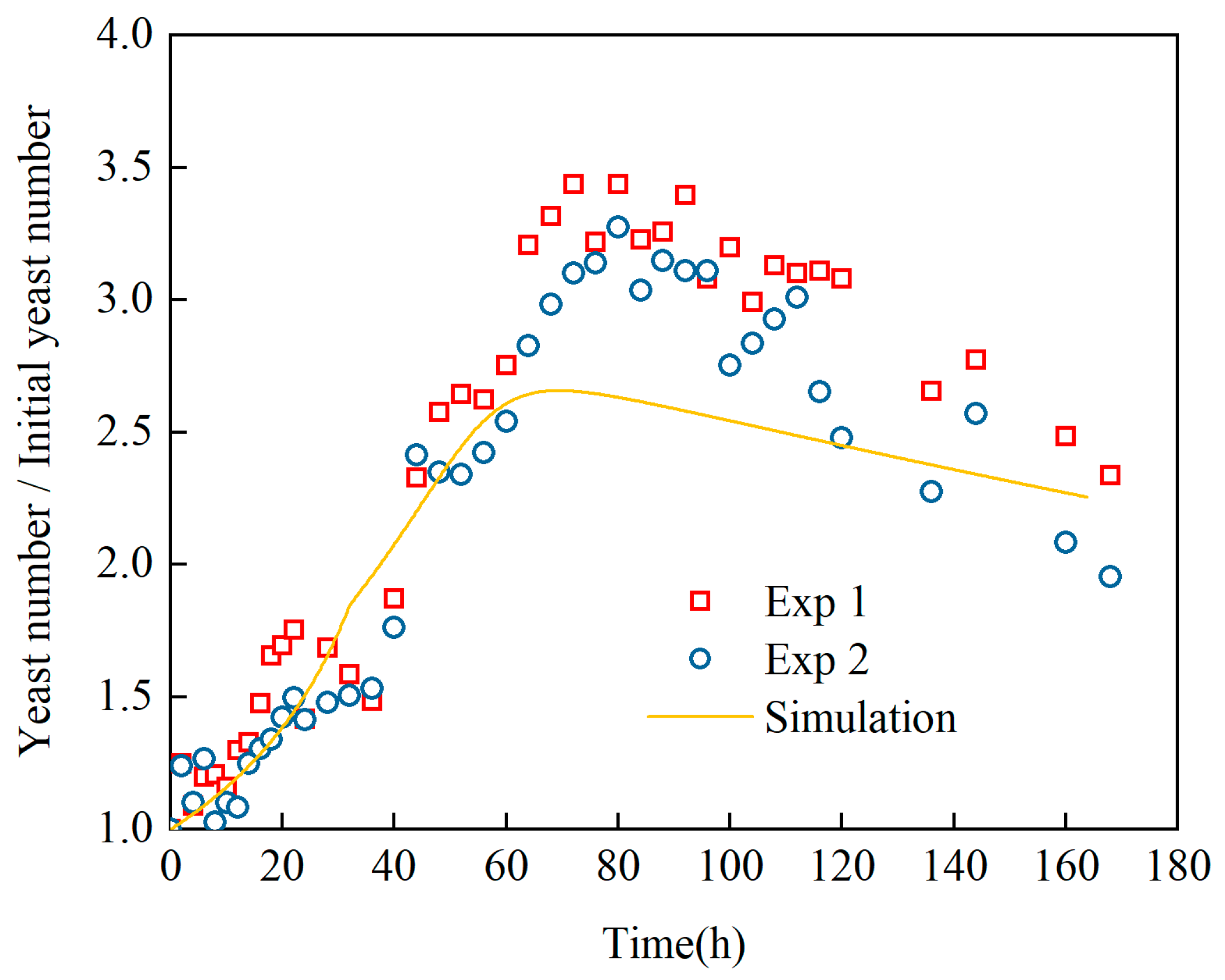 While the work of Miller et al. provides a robust framework for multiphase alcoholic fermentations, industrial beer fermentation presents a distinct set of challenges that have not yet been adequately addressed. First, unlike the multiphase system of red wine, beer fermentation is a single-phase (liquid) process. The heterogeneity within it does not originate from a solid phase but is driven by thermal asymmetry induced by external cooling on very large-scale (often >300 m3) fermenters. Second, existing models for alcoholic fermentation, including that of Miller, have not integrated a detailed yeast population balance model that describes cell proliferation, division, and apoptosis—a biological process critical to the overall reaction kinetics.