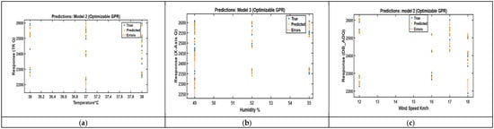 RUL predictions: (a) Temperature, (b) Humidity, (c) Wind speed.
