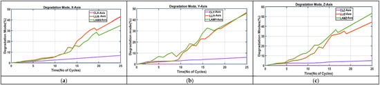 Degradation modes CL, LLI, LAM for (a) X-axis, (b) Y-axis, (c) Z-axis.