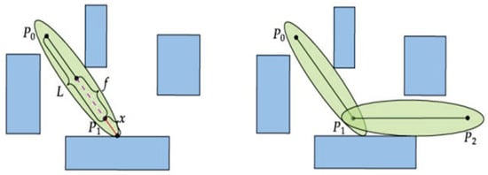 where columns of are the normal vectors , and contains the corresponding offsets . Since the initial ellipsoid contains segment L, and is constructed from its tangent planes, it is guaranteed that . The incorporation of surface sample points ensures the polyhedron boundary approximates the ellipsoidal shape, while obstacle exclusion guarantees safety.