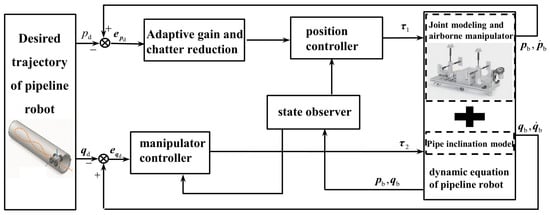 Despite considerable advancements in the field of pipe robotics, achieving high-precision and high-robustness autonomous control for tasks like rust removal remains a formidable challenge. The dynamic behavior of the robot is an inherently high-dimensional, strongly coupled, and nonlinear process []. Compounding this complexity, the robot is inevitably subjected to various uncertainties during practical operation, which can be primarily categorized as: (1) Parametric uncertainties: The precise values of the robot’s physical parameters, such as mass and moment of inertia, are difficult to obtain due to manufacturing tolerances, payload variations, or component wear []. (2) Unmodeled dynamics: Complex nonlinear forces, such as the friction between the wheels and the pipe wall, which exhibit characteristics like the Stribeck effect and hysteresis, are difficult to describe accurately with simple models [,]. (3) External disturbances: These include unknown forces and torques arising from fluid impacts within the pipe, cable drag, and interactions with obstacles []. These uncertainties severely degrade the performance of conventional control algorithms, leading to a deterioration in tracking accuracy and even system instability.