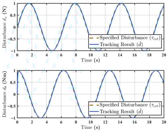 In this study, the disturbance observer is specifically configured to track this known external disturbance component, , to evaluate its tracking performance under the given parameters.
