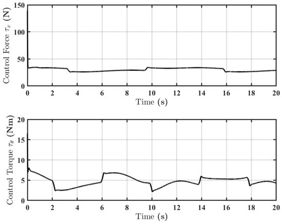 The control inputs are shown in Figure 7. The axial force and joint torque are smooth and continuous, confirming that the boundary layer technique effectively mitigates chattering. The inputs remain well within the predefined saturation limits of N and Nm.