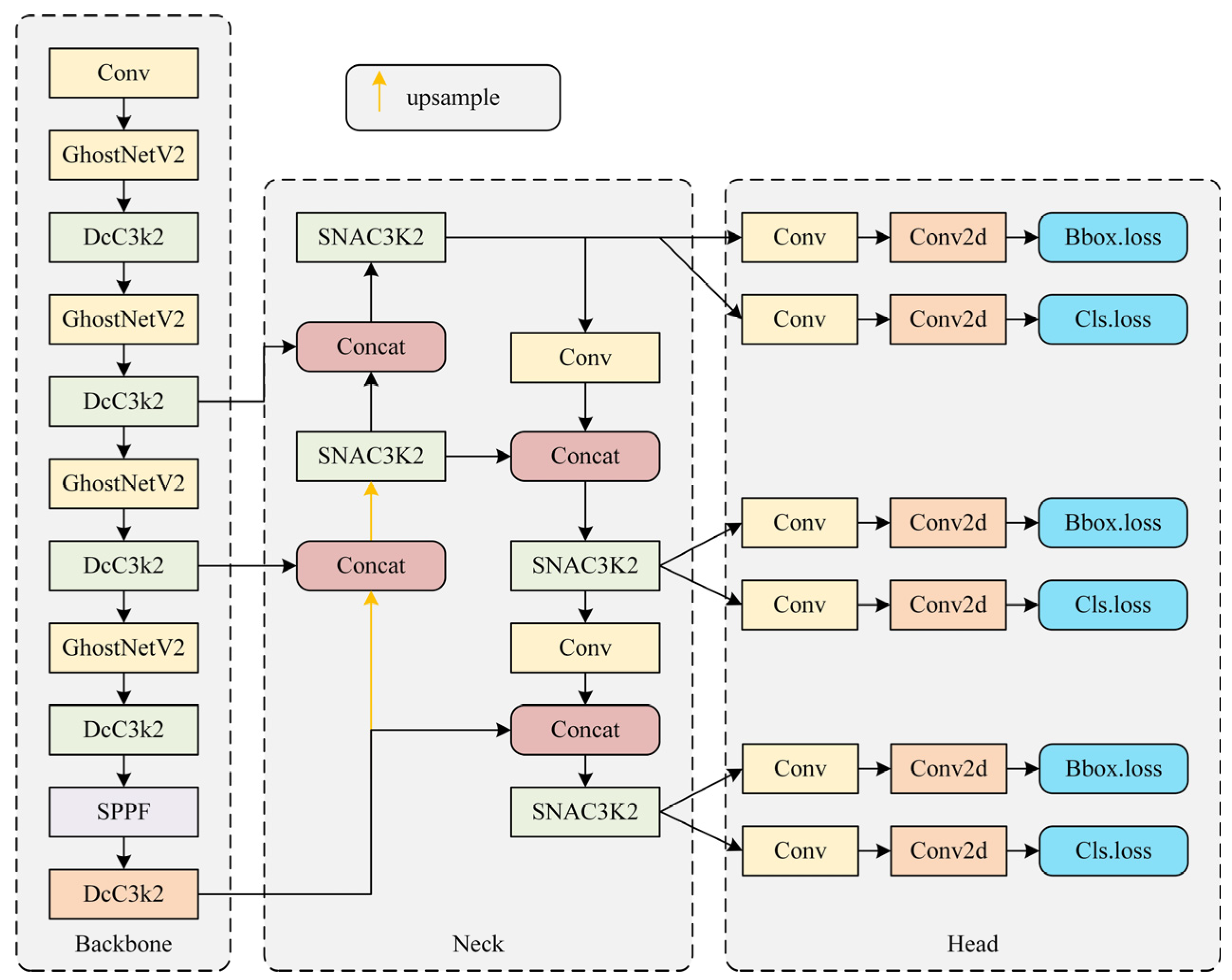 In addition, the integration of SNAC3k2 and GhostNetV2 modules helps maintain high detection accuracy while reducing the overall parameter count by 0.2 million. This efficiency gain is largely credited to optimized convolutional operations and the lightweight “hamburger” architecture embedded within SNAC3k2, which facilitates effective global context modeling with minimal computational overhead.