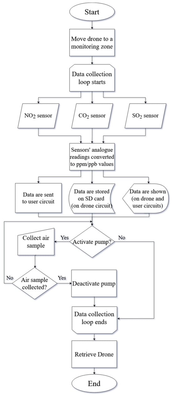 - Taamté, J.M.; Noube, M.K.; Signing, V.R.F.; Hamadou, Y.A.; Masahiro, H.; Tokonami, S. Real-time air quality monitoring based on locally developed unmanned aerial vehicle and low-cost smart electronic device. J. Instrum. 2024, 19, P05036. [Google Scholar] [CrossRef]