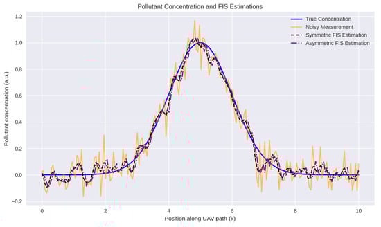Recent studies have investigated the application of UAVs for collecting high-resolution environmental data. Low-cost sensing platforms enable dense spatial mapping, but their performance is affected by sensor nonlinearity and environmental variability [,,,,,,,,]. Fuzzy logic has been applied to air quality assessment to manage uncertain and noisy sensor data [,,,,,,]. However, only a few approaches explicitly formalize symmetry and asymmetry in fuzzy control as a stabilizing mechanism for ill-posed backward problems in pollutant estimation. The proposed framework builds upon these works by formalizing symmetric and asymmetric membership functions to enhance robustness in practical UAV deployments.