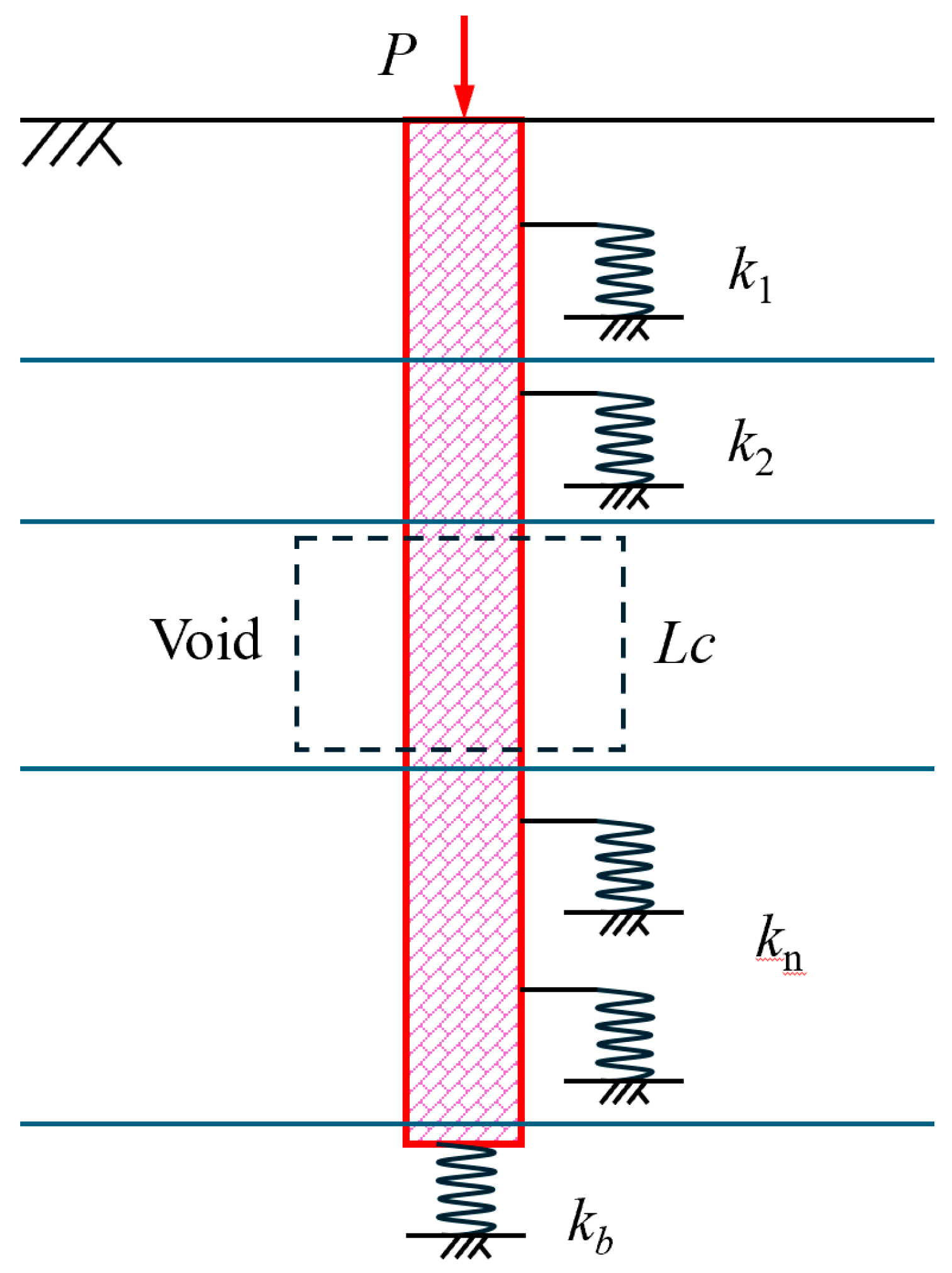 - Void assumptions: Within the void, lateral support is absent. The void is bounded by z1 and z2, with height Lc= z2 − z1.