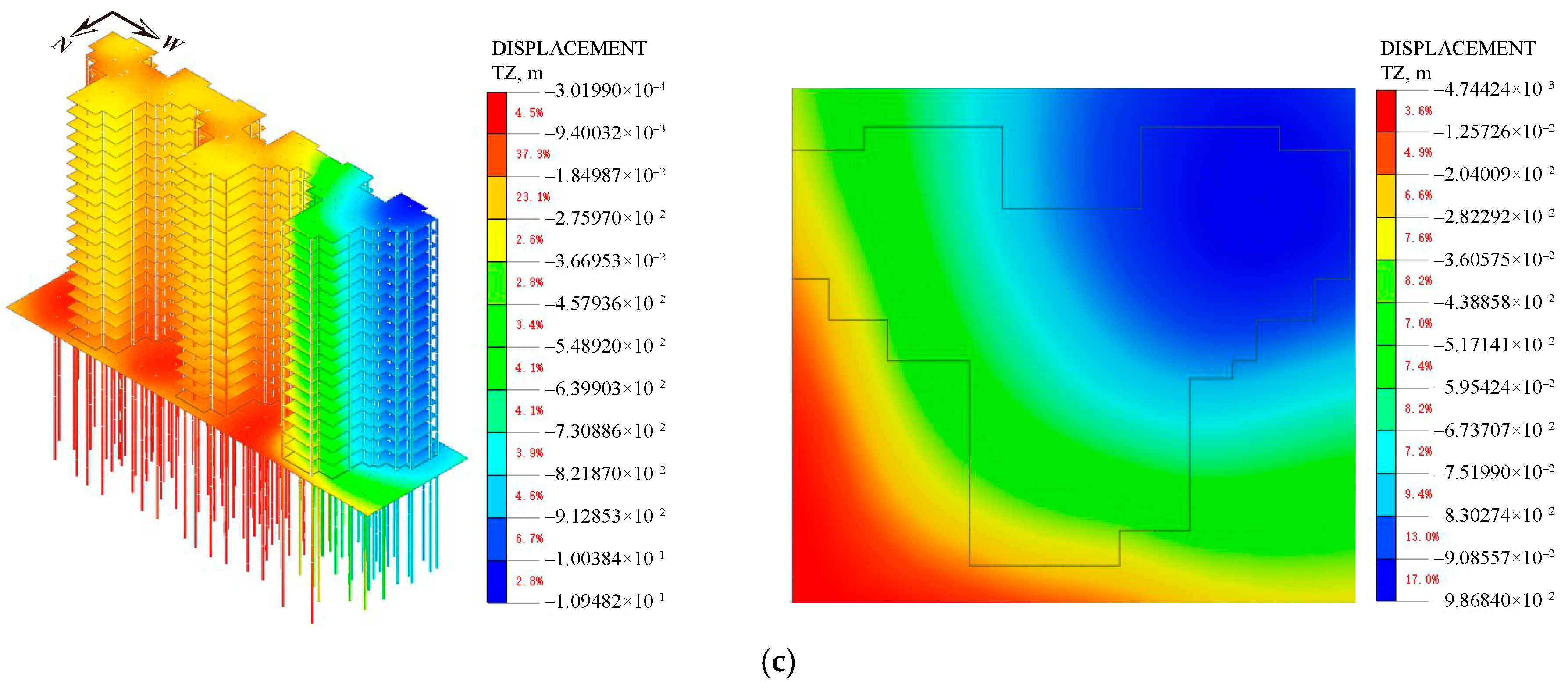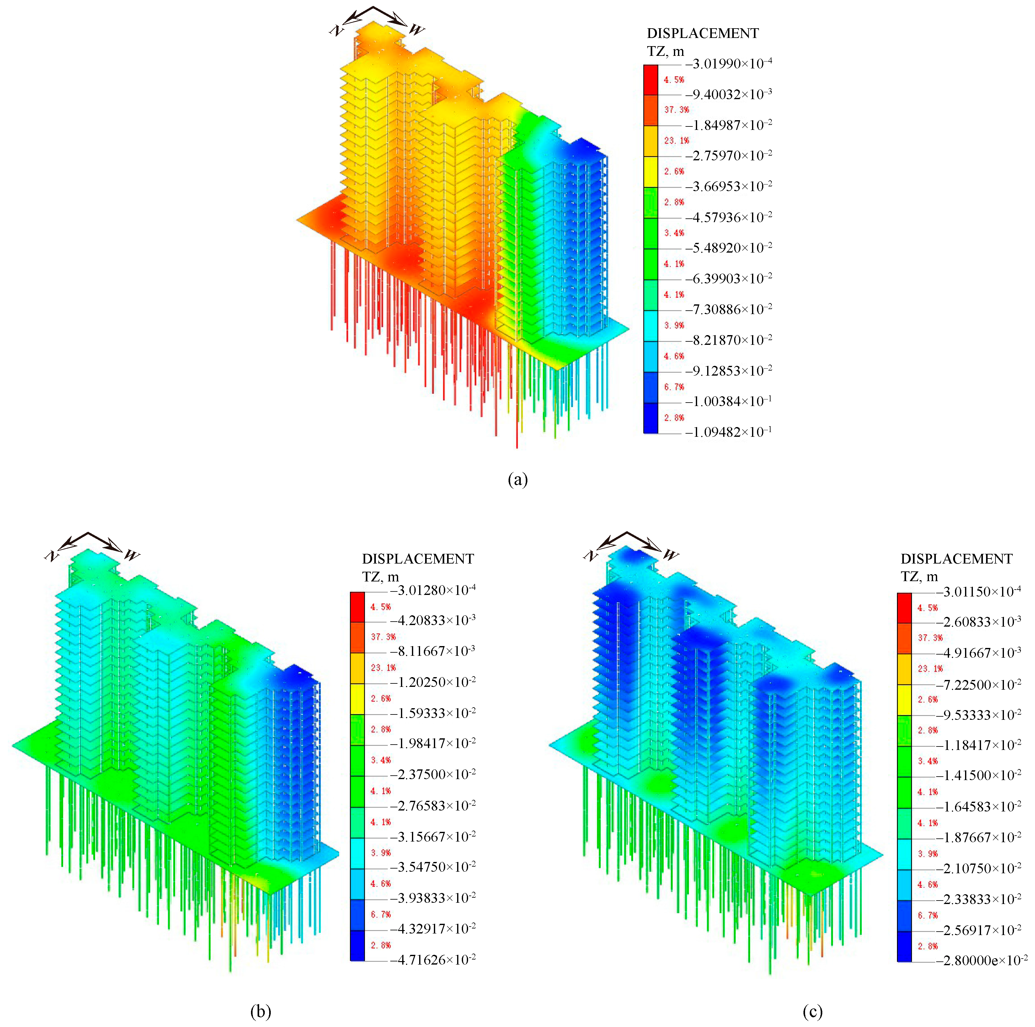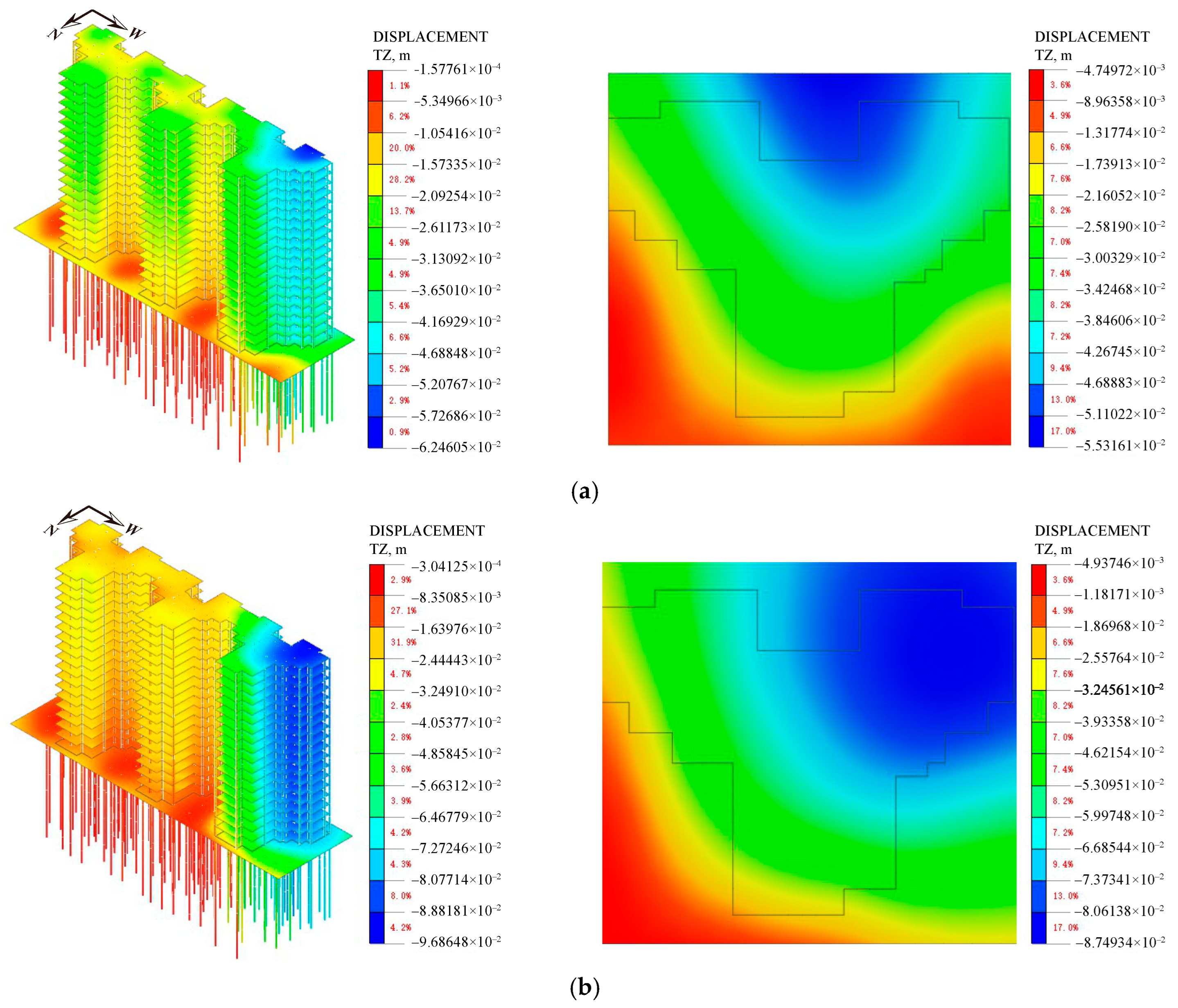 - Wang, L.; Zhao, X.; Liu, S. A Study of Differential Foundation Settlement of Piled Raft and Its Effect on the Long-term Vertical Shortening of Super-tall Buildings. Struct. Des. Tall Build. 2021, 30, e1832. [Google Scholar] [CrossRef]