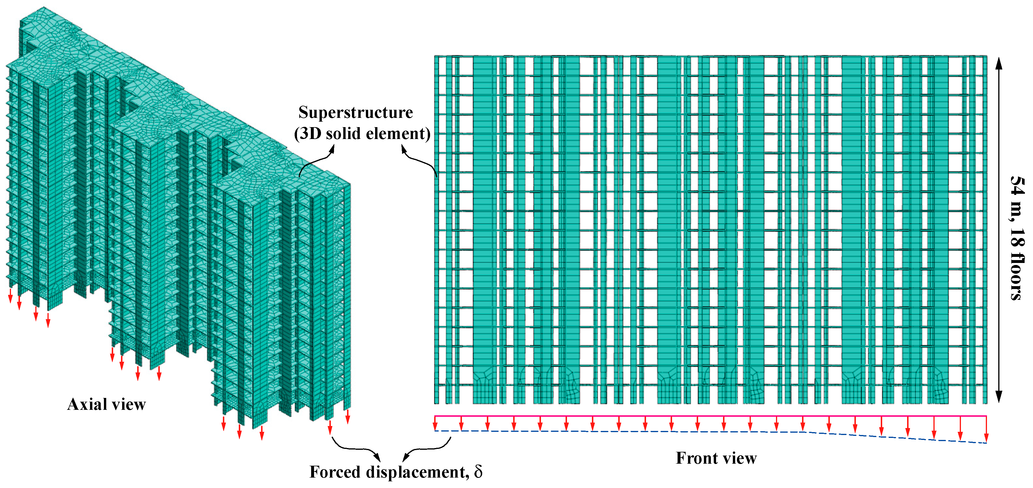 - Katzenbach, R.; Schmitt, A.; Turek, J. Assessing Settlement of High-Rise Structures by 3D Simulations. Comput. Aided Civ. Infrastruct. Eng. 2005, 2005, 221–229. [Google Scholar] [CrossRef]