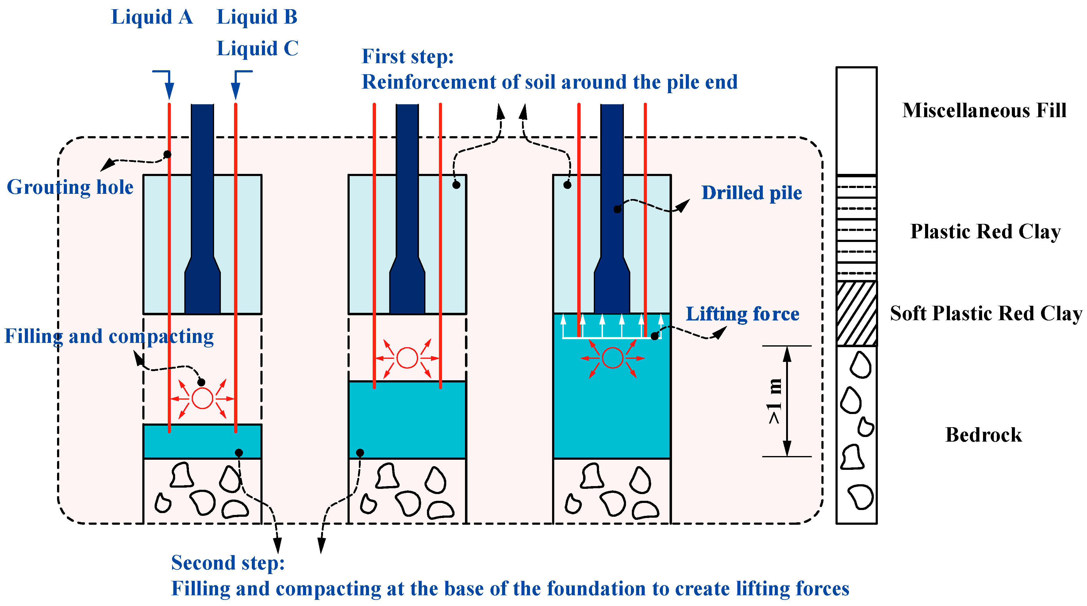 5.1. Principle of Foundation Reinforcement Lifting
