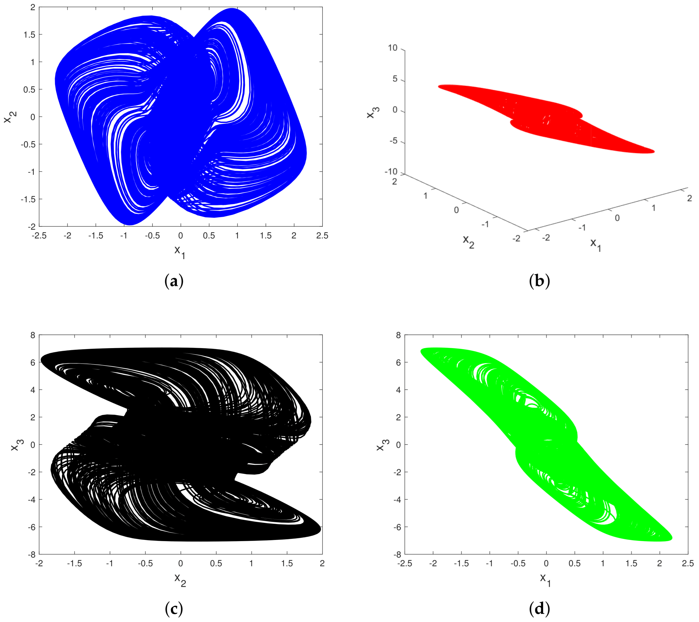 The simulations were carried out using MATLAB (version R2024b, MathWorks, Natick, MA, USA) to evaluate the effectiveness of the proposed chaotic controller. The key parameters are detailed below: