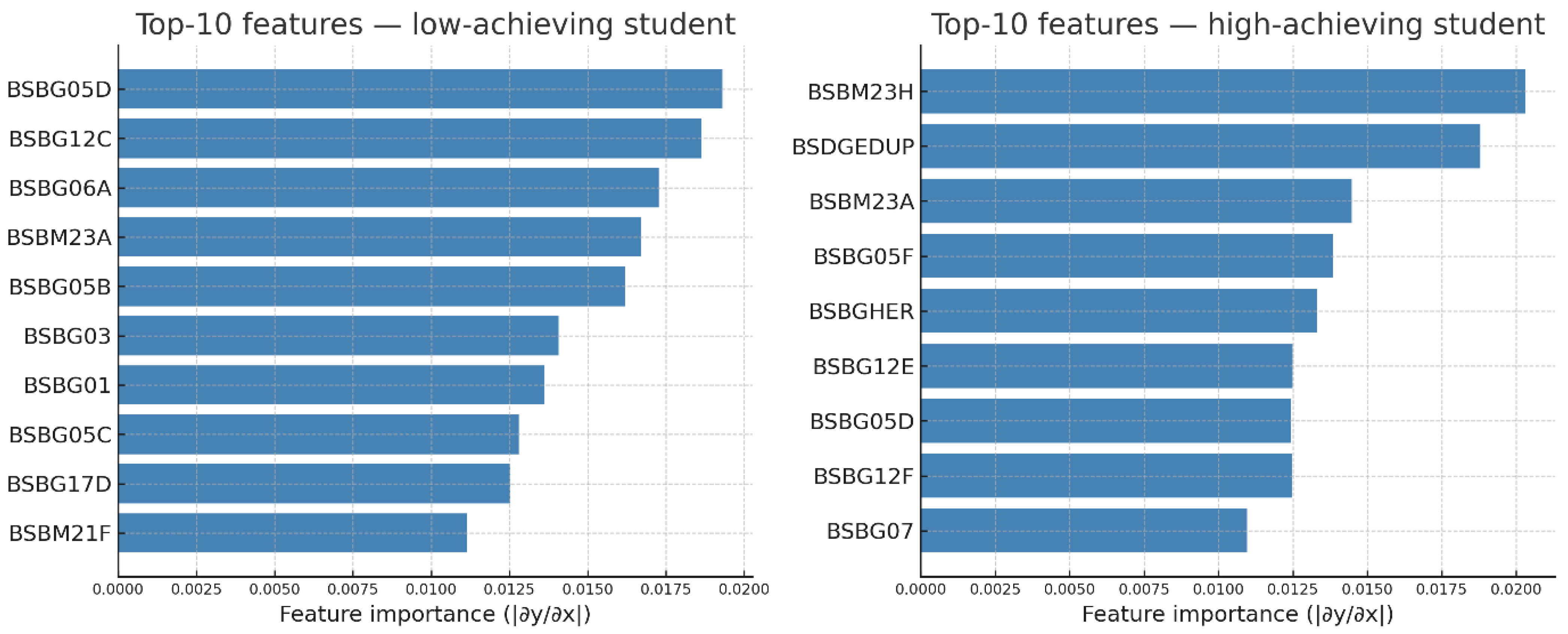 Figure 2 shows the top 20 student-level variables with the highest contribution of all students.