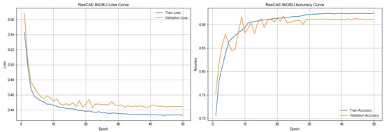 Comprehensive experimental results on the CICIDS2017 and UNSW-NB15 datasets demonstrate the excellent performance of the proposed model. A comparative analysis confirms that the ResCAE-BiGRU model not only surpasses traditional machine learning algorithms but is also highly competitive with, and in some aspects superior to, other contemporary deep learning models. The results demonstrate that this method effectively addresses the challenge of class imbalance, significantly improving the overall performance of anomaly detection in network traffic. This work provides a robust foundation for developing more effective network traffic anomaly detection frameworks. Future work will focus on validating the model’s effectiveness and generalizability across a broader range of datasets.