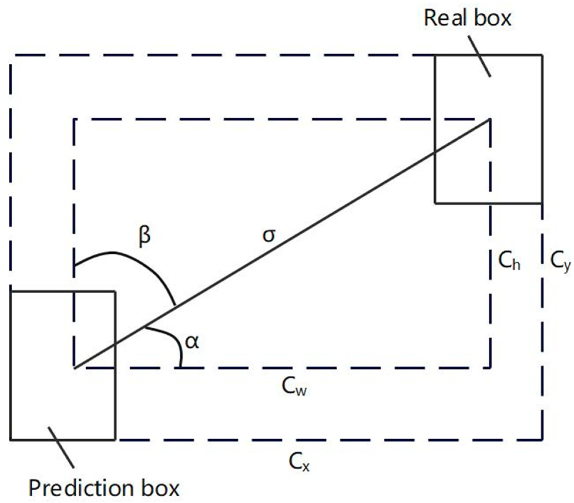 SLoU enhances convergence speed by introducing an angle-based penalty term. Figure 11 illustrates the schematic of the SLoU function.