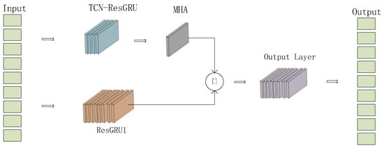 The proposed TCN-ResGRU-MHA architecture processes the raw data in parallel using the TCN, expands the receptive field through dilated convolutions, and obtains temporal features at different scales using different dilation factors. Causal convolutions are used to ensure that future information is not leaked. The residual module is introduced based on GRU, making it more effective at capturing short-term dynamic changes, ensuring a rapid response at points of abrupt signal changes, while suppressing gradient vanishing problems caused by deep network degradation. The multi-head attention mechanism is introduced to dynamically reassign feature weights, focusing on important moments, suppressing noise, reducing attention weights on outliers, and integrating multi-scale features. Multiple attention heads can focus on different time scales.