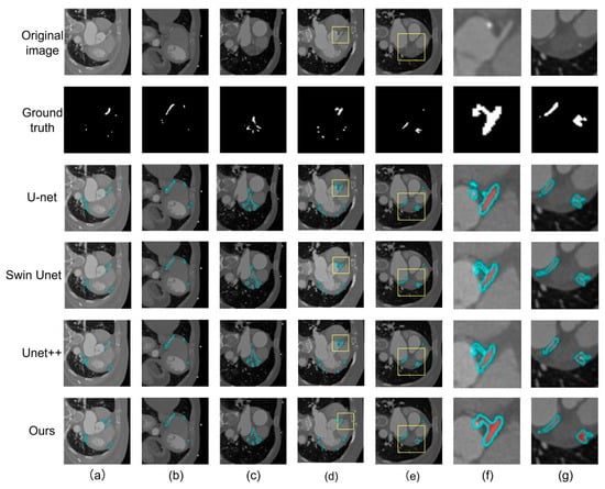 - He, S.; Ji, Y.; Zhang, Y.; Zeng, A.; Pan, D.; Lin, J.; Zhang, X. CFNet: A Coarse-to-Fine Framework for Coronary Artery Segmentation. In Proceedings of the Chinese Conference on Pattern Recognition and Computer Vision (PRCV), Xiamen, China, 13–15 October 2023; Springer: Singapore, 2023; pp. 431–442. [Google Scholar]