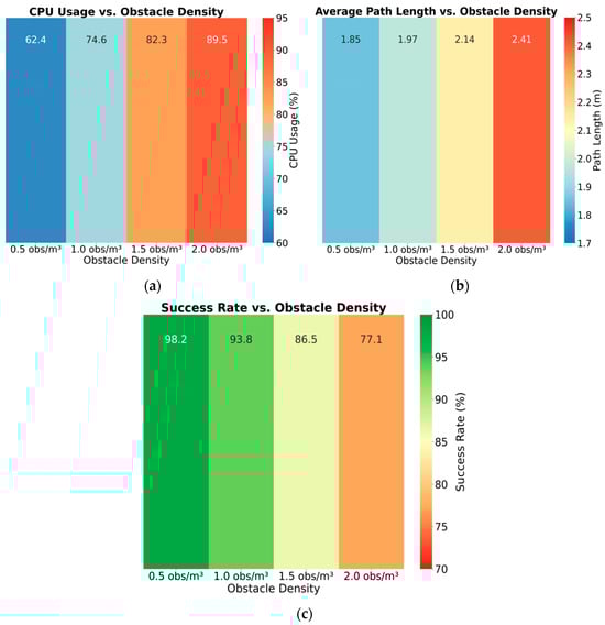 To verify the rationality of hyperparameter selection in Section 2.3, this study conducted sensitivity tests on key parameters in a typical industrial scenario with obstacle density of 1.5/m3 and speed of 1.2 m/s. As shown in Table 8, each parameter exhibits significant performance differences within the preset search space, demonstrating that the original parameter selection achieves Pareto optimality.