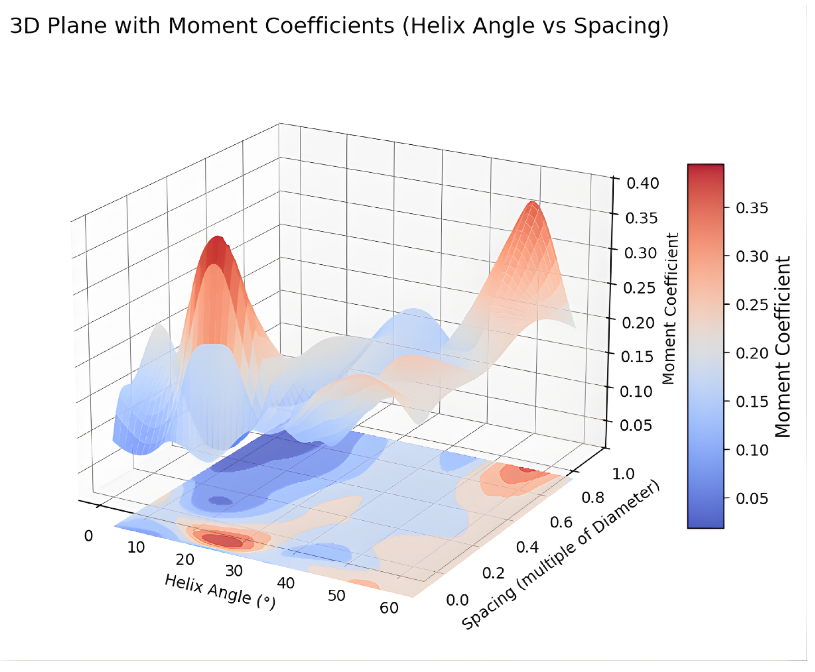 39]. A single turbine with measured height of 1 m and diameter of 0.17 m was modeled. The performance was evaluated at a constant wind speed of 8 m/s for helix angles of 0°, 10°, 20°, 30°, 40°, 50°, and 60°. Once the optimum helix angle was identified, a multi-turbine configuration was simulated to analyze the effect of spacing [