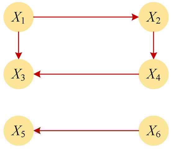 Based on field experience, the causal relationships between are shown in Figure 6, with the actual causal paths being , , and . The production significance is as follows: abnormal roll condition affects rolling force distribution and tension, leading to abnormal rolling force, while incoming thickness/hardness variation causes abnormal strip crown. Ultimately, abnormal rolling force and incoming crown jointly cause thickness and shape defects.