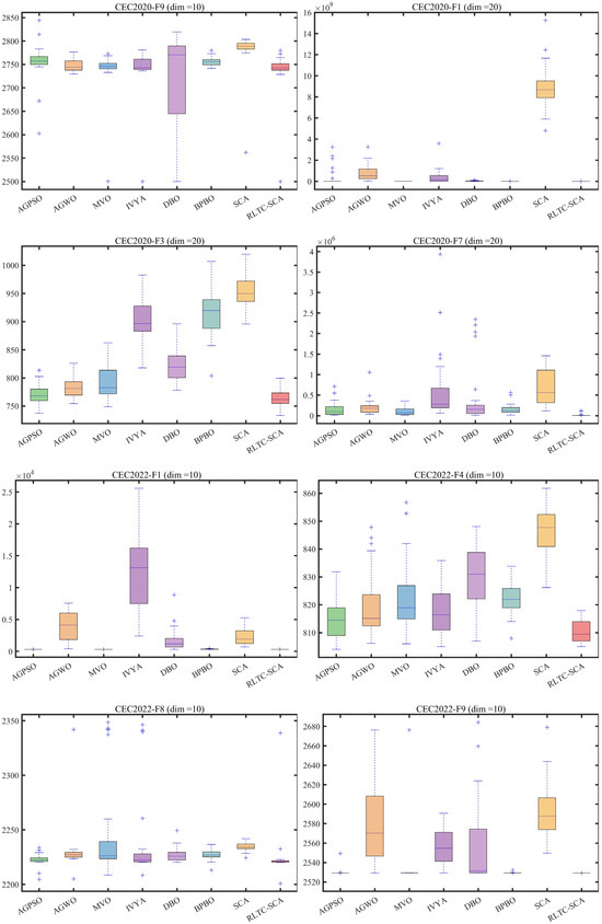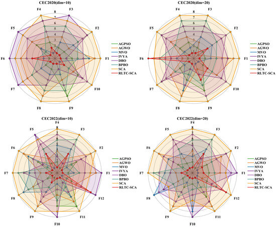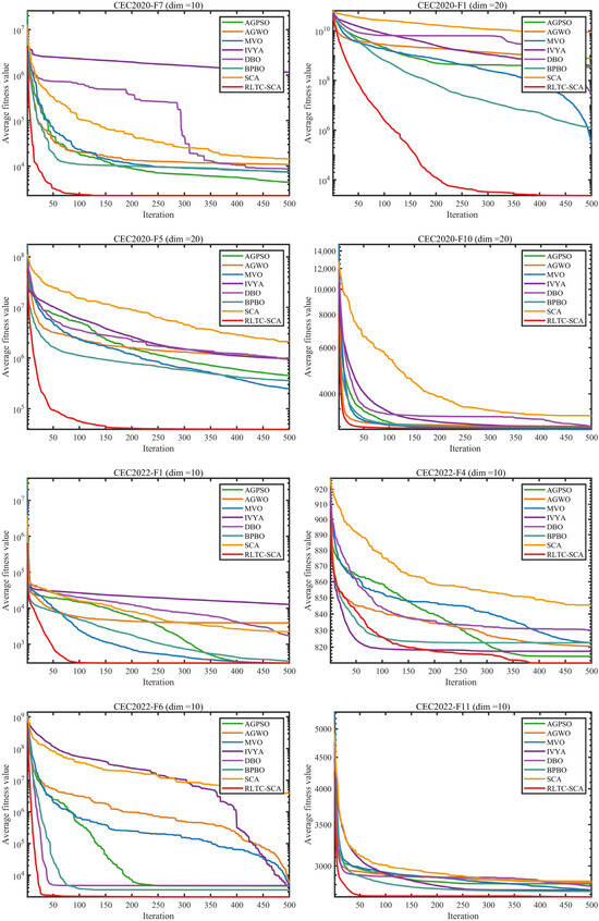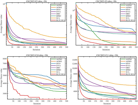 Numerical validation: Based on the CEC2020 and CEC2022 benchmark suites, RLTC-SCA is compared with several advanced algorithms such as AGPSO and AGWO. Through ablation experiments, convergence behavior analysis, and statistical significance tests, the optimization performance of RLTC-SCA is comprehensively verified.