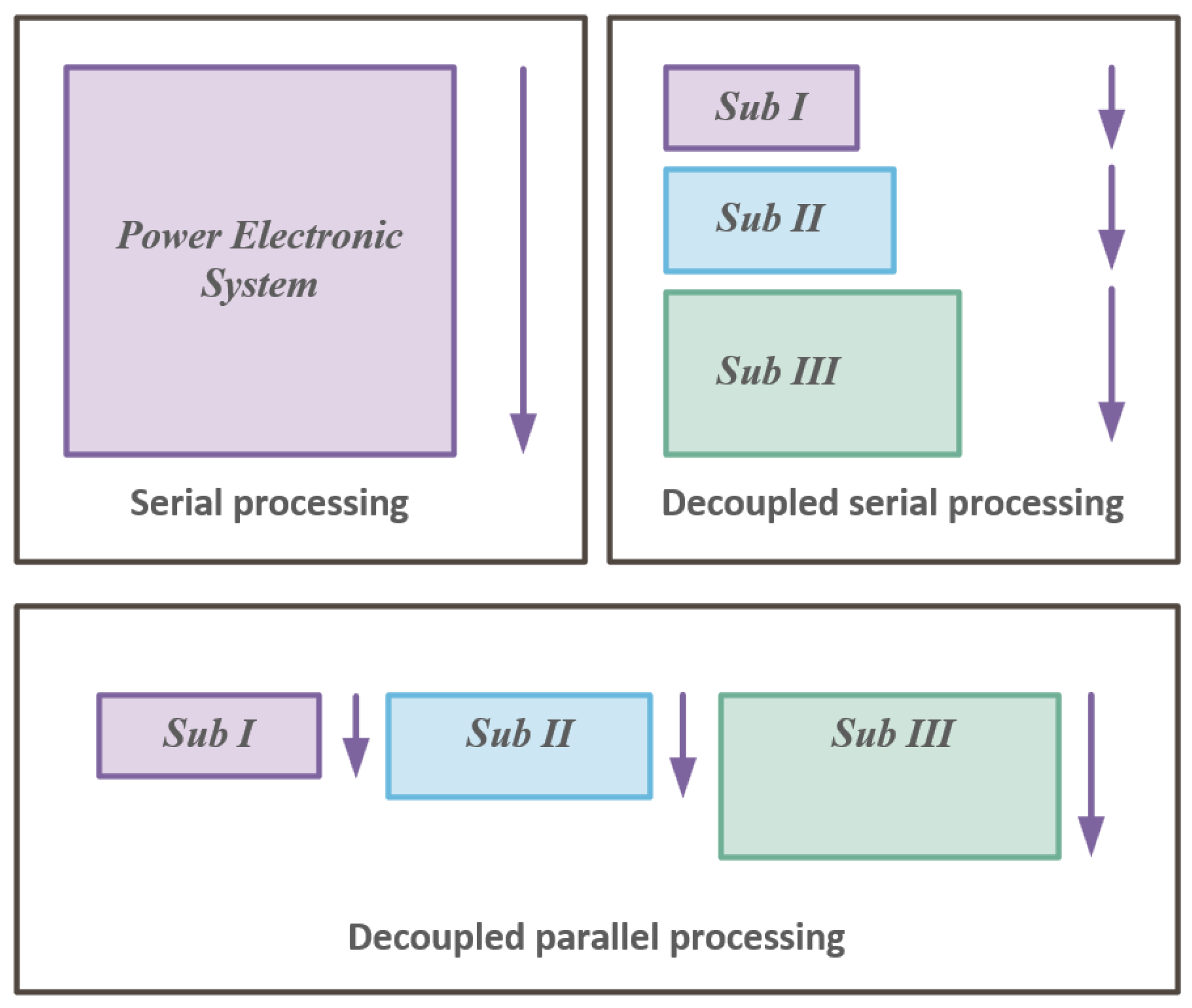 In general, the minimum delay path determines the minimum number of simulation steps that the system can perform. In this regard, the minimum number of simulation steps that can be performed by a parallel decoupled operation system requires 58 ns. In contrast, serial decoupling requires 83 ns, so it is evident that parallel decoupling has a significant advantage in terms of real-time simulation step size.