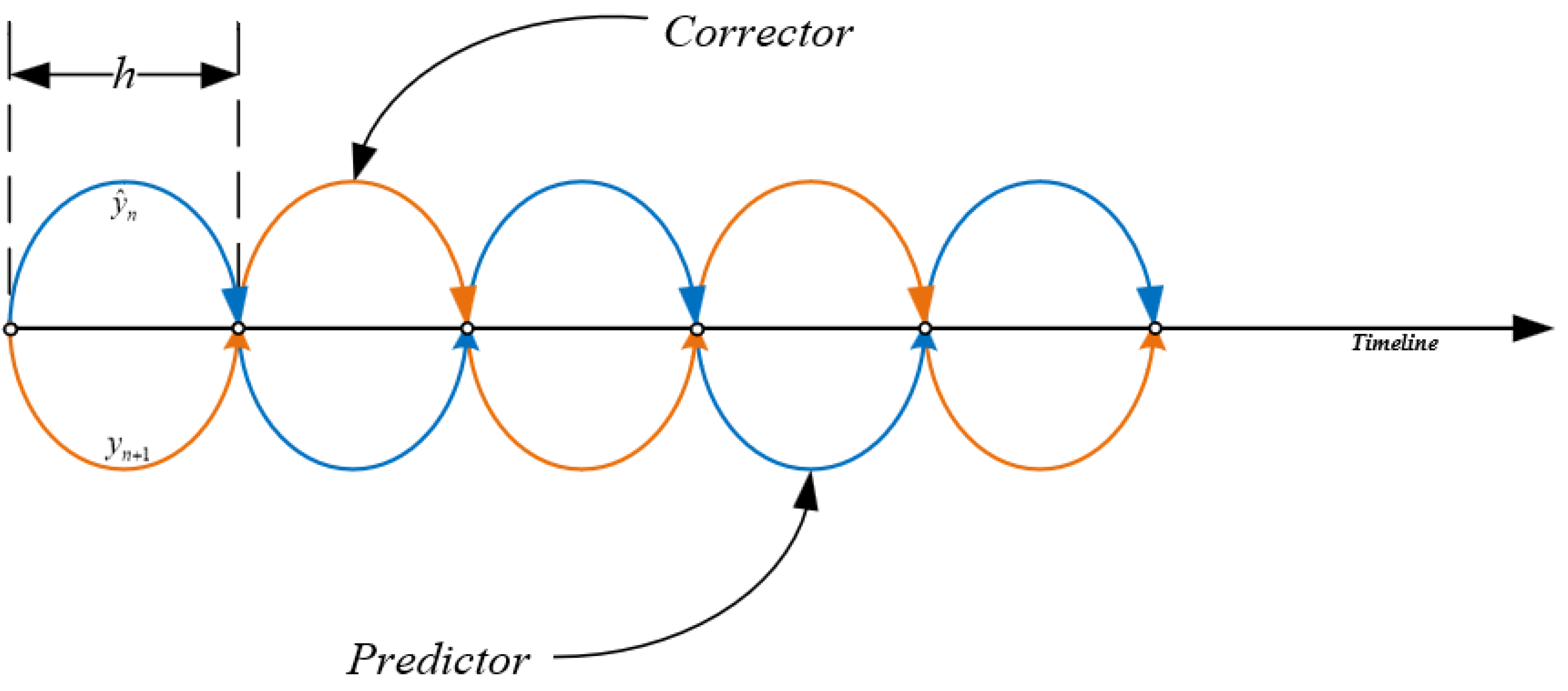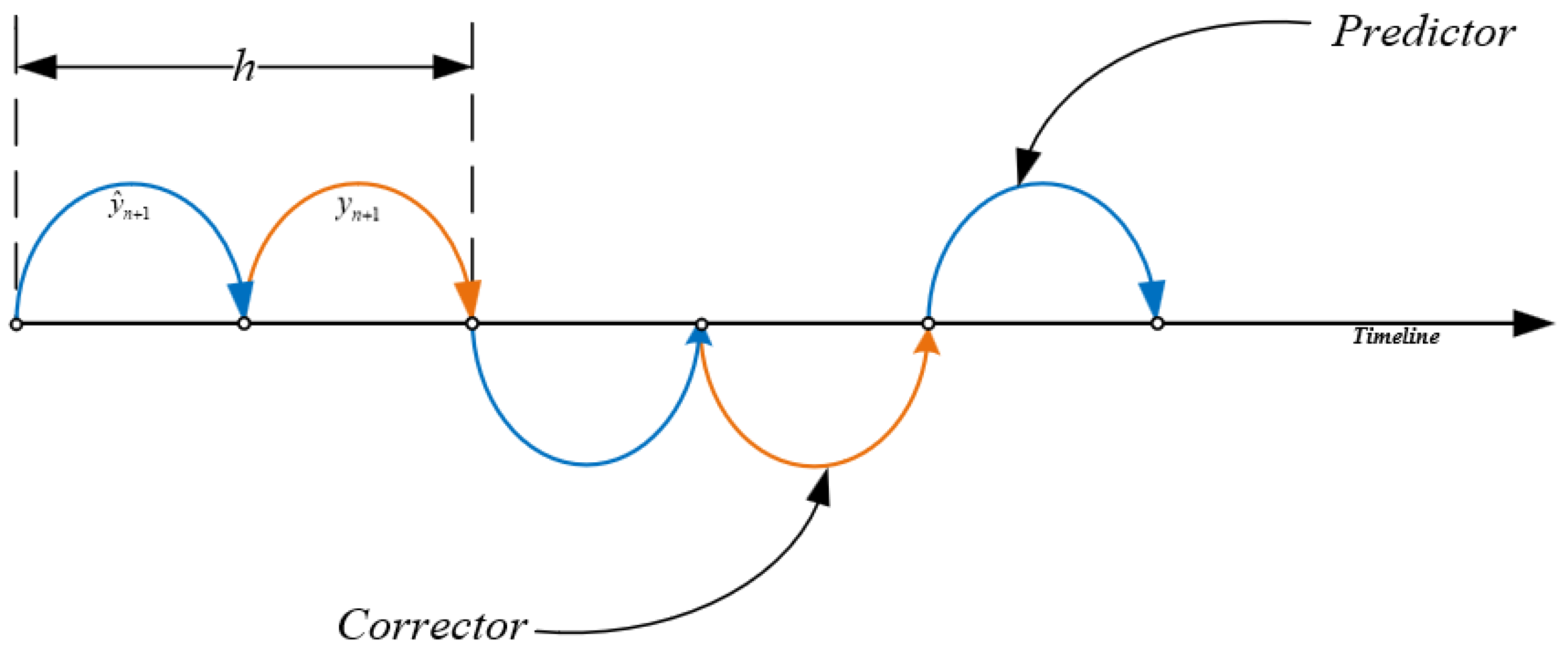 depending on the computational result of the predictor step, while the global computational time step h is the sum of the computational time of the two steps.