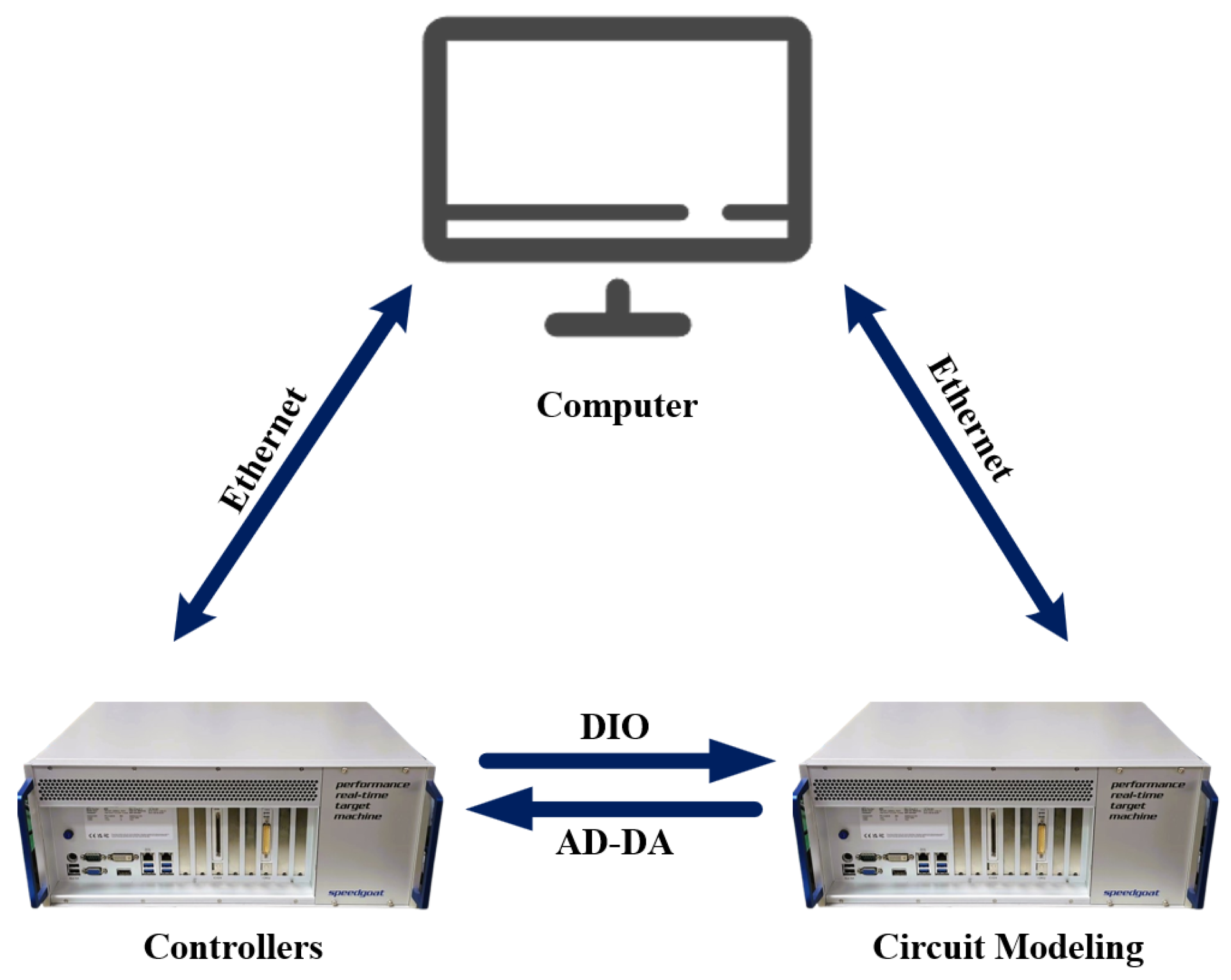 18]. In such a background, it is meaningful to use the Speedgoat real-time simulator to perform real-time simulation at the ns level, so in this study, we choose to use the Speedgoat real-time simulator for simulation to realize an ns-level time step to improve the experimental efficiency and to ensure sufficient accuracy.