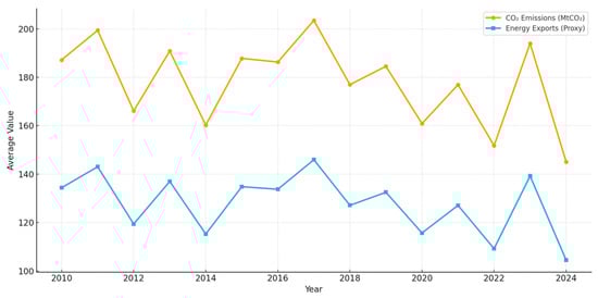- Arisanti, R.; Usman, M.; Winarni, S.; Pontoh, R.S. Modeling the dynamic relationship between energy exports, oil prices, and CO2 emission for sustainable policy reforms in Indonesia. Sustainability 2025, 17, 6454. [Google Scholar] [CrossRef]