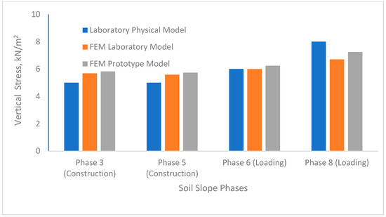 Laboratory physical model and finite element model for vertical stresses behind the reinforcement at different phases.