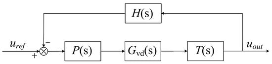 The primary objective of the output voltage control loop is to regulate the output voltage and enhance the dynamic performance of the converter. The corresponding control block diagram is shown in Figure 7. In this diagram, denotes the reference output voltage; denotes the small-signal transfer function that relates the main switch duty cycle D to the average output voltage; denotes the PI compensator; represents the transfer function of the voltage detection stage; and denotes the transfer function associated with the feedback path.
