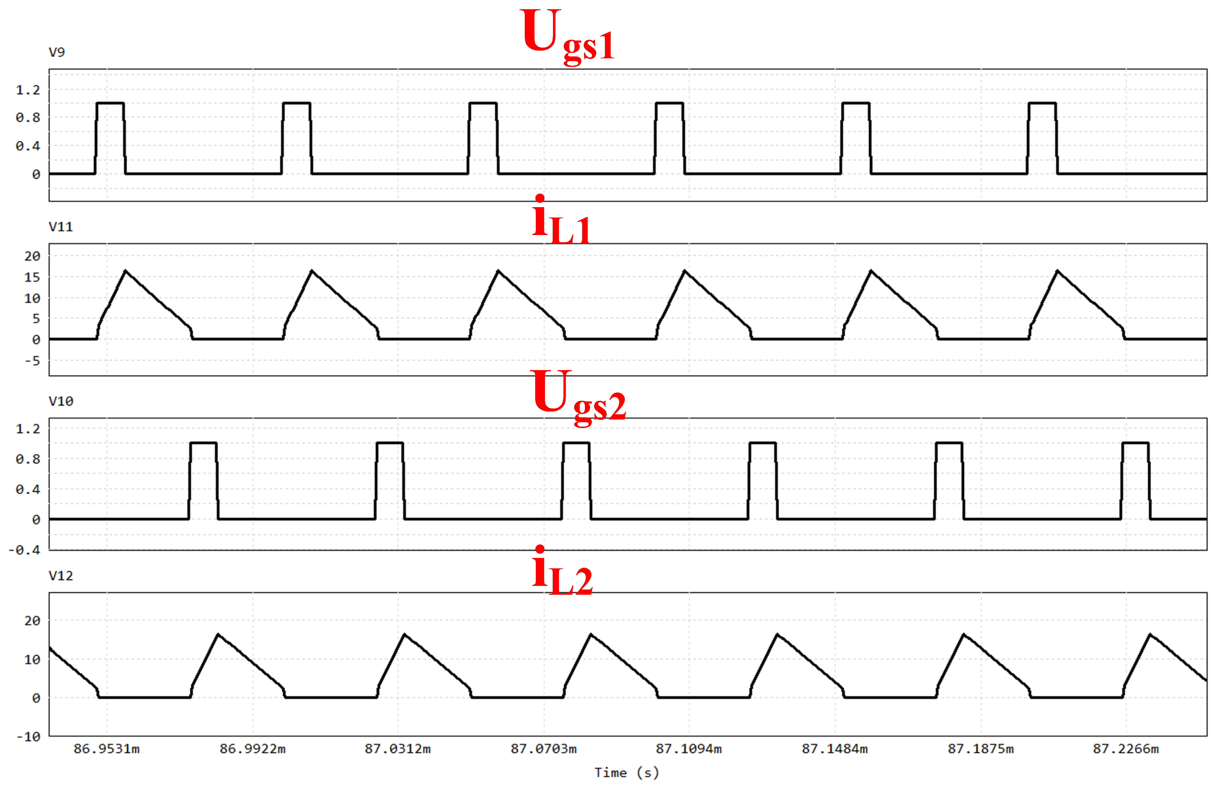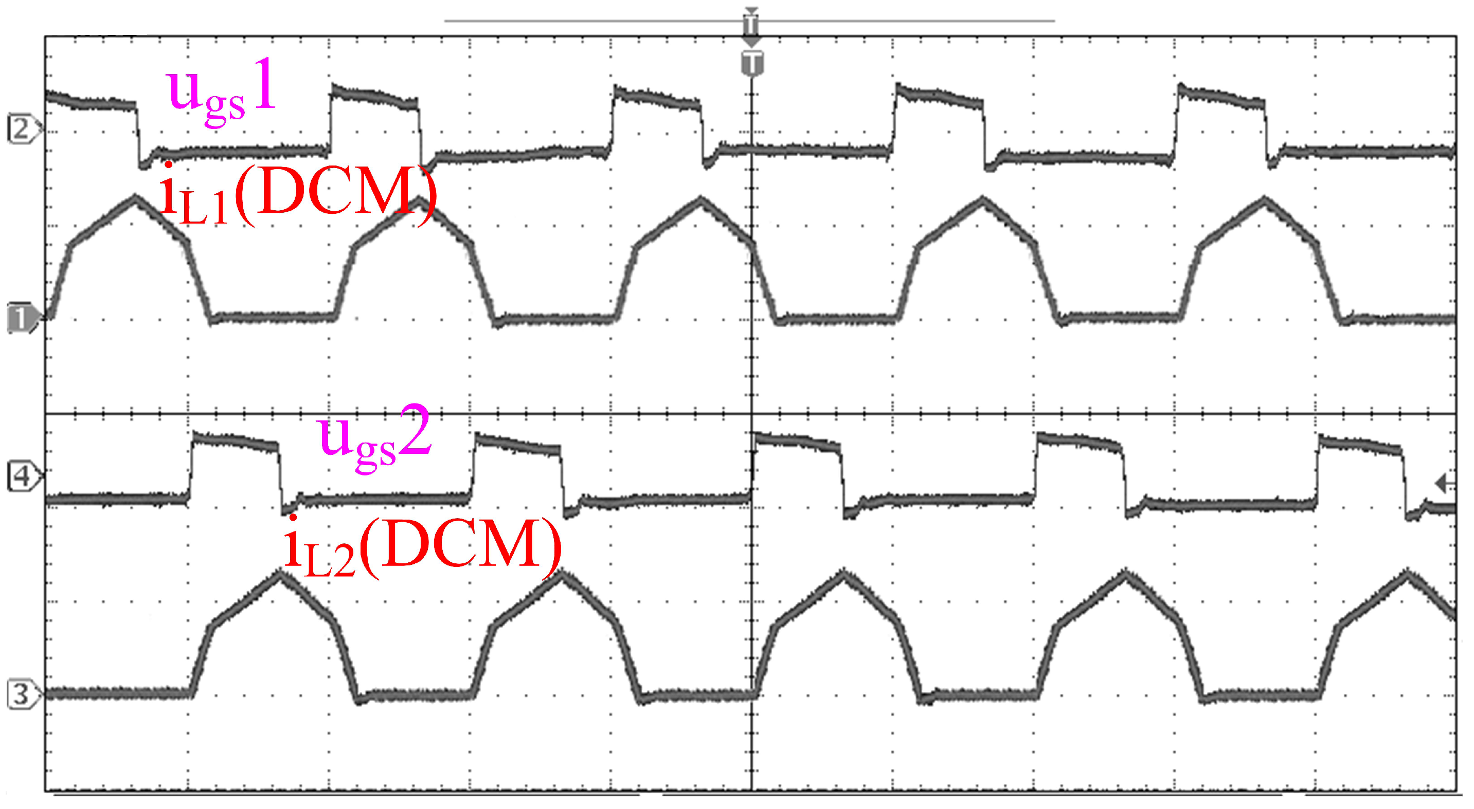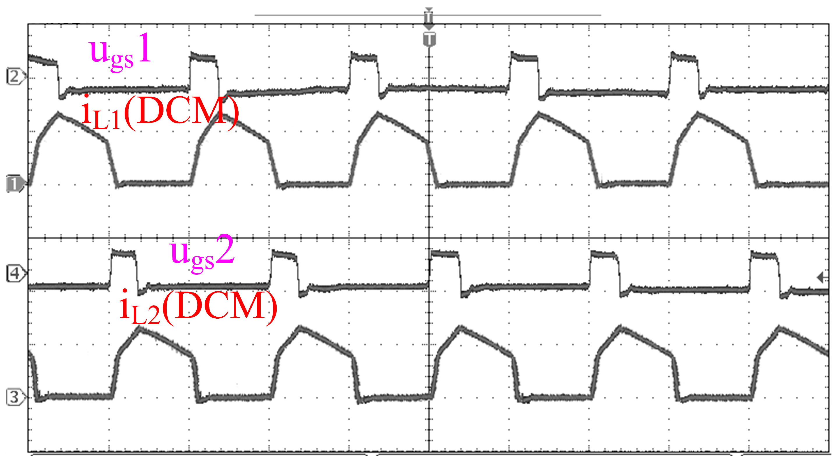Figure 5. In this case, the operating principle is identical to that of a traditional two-phase interleaved Buck topology operated in DCM. As the underlying dynamics are standard and introduces no additional insight for the proposed topology, a detailed analysis is omitted, and the discussion henceforth focuses on the coupled case.
