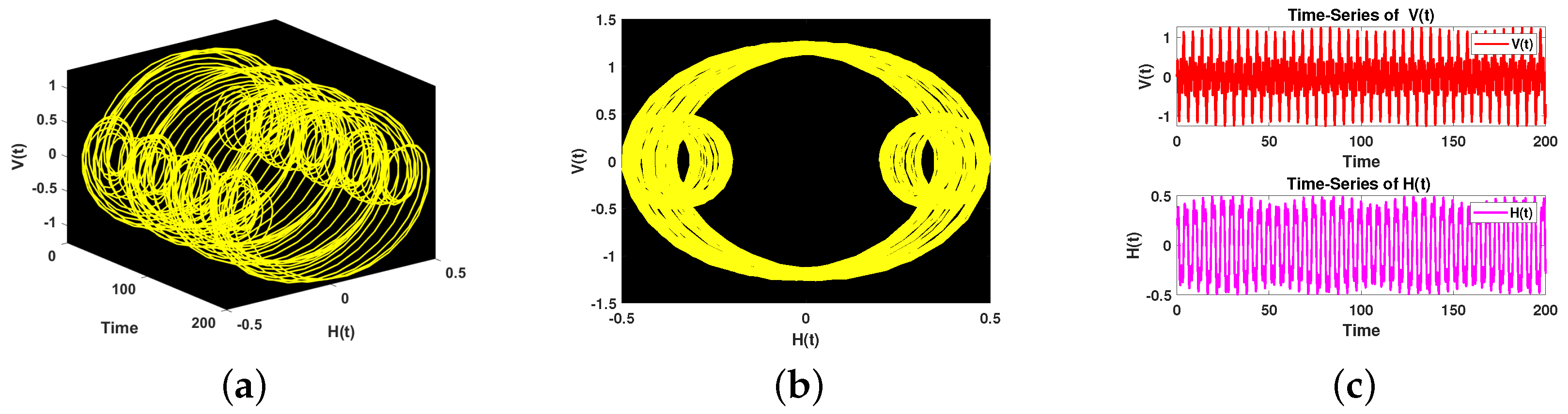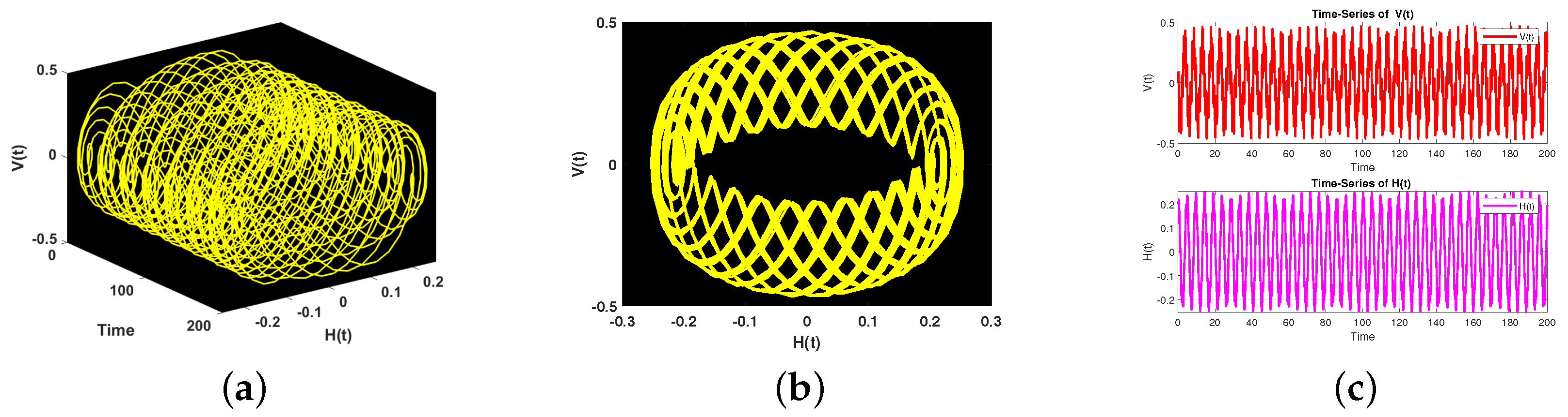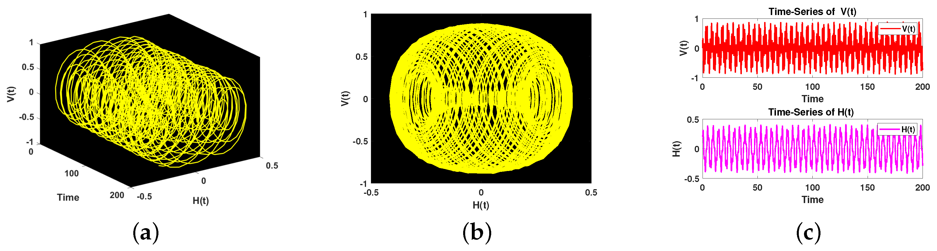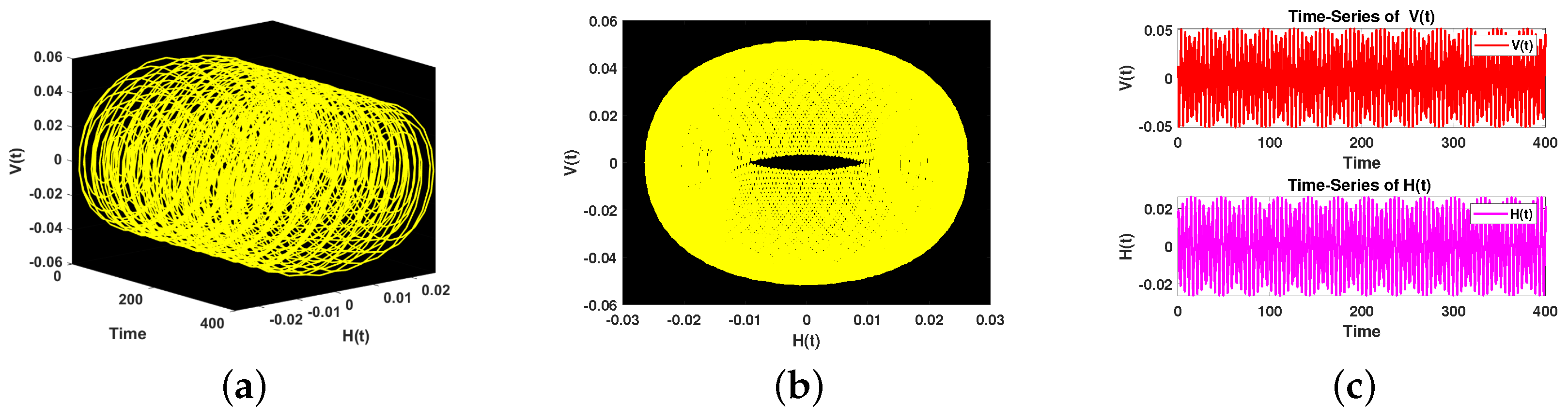 - Farooq, K.; Abdullah, A.R.; Hussain, E.; Murad, M.A.S. Chaos, Lyapunov Exponent, and Sensitivity Demonstration of the Coupled Nonlinear Integrable Model with Soliton Solutions. AIMS Math. 2025, 10, 22929–22957. [Google Scholar] [CrossRef]