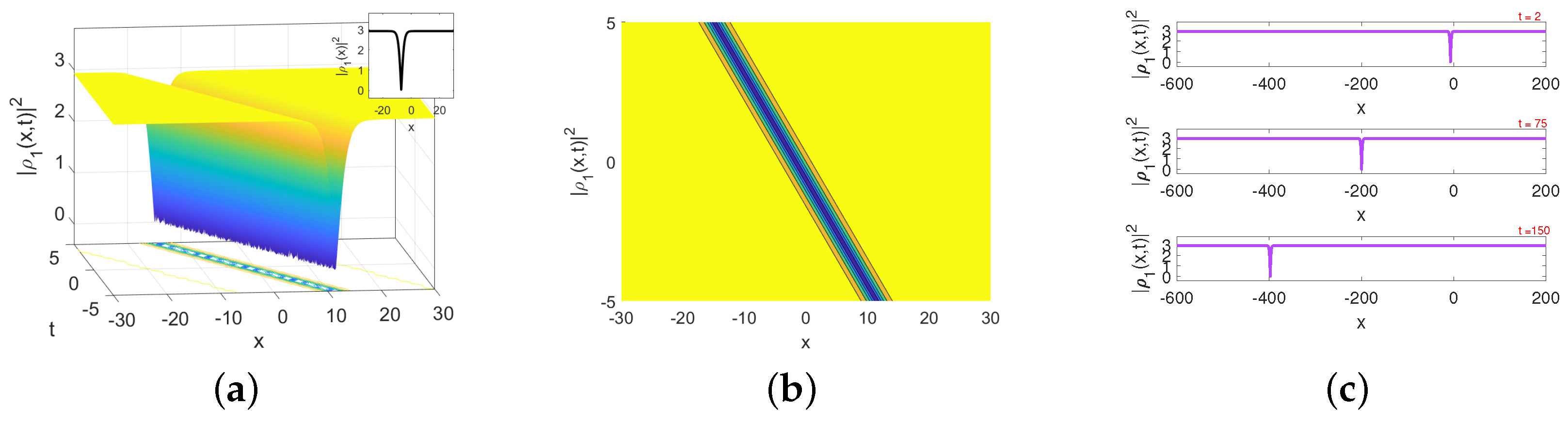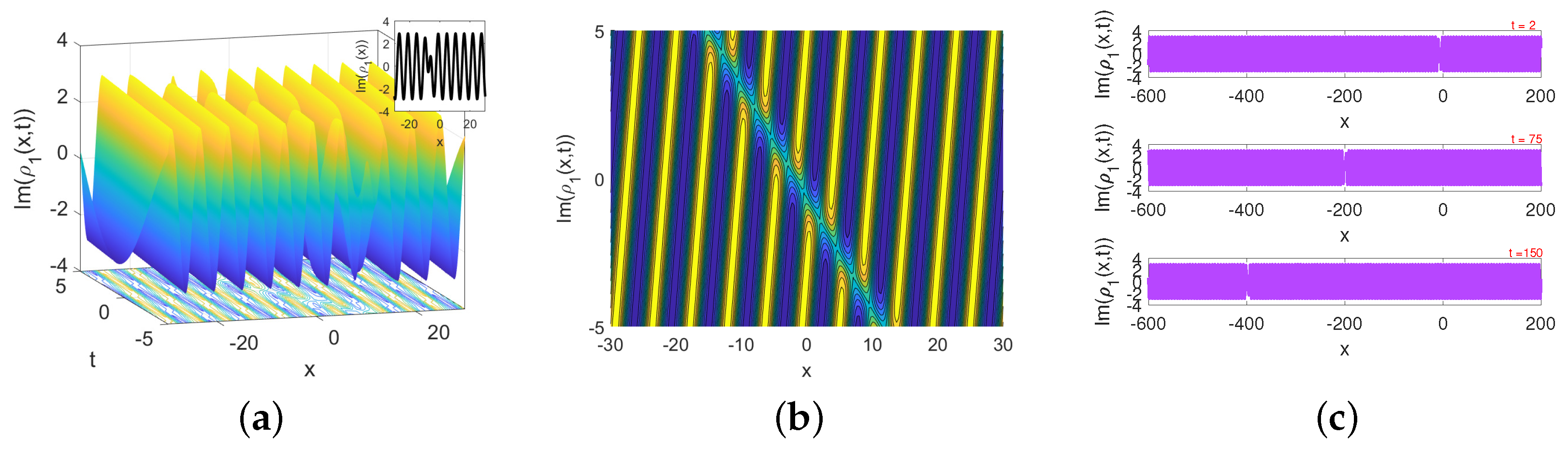 - Iqbal, M.A.; Gepreel, K.A.; Akbar, M.A.; Osman, M.S. The Compatibility and Dynamics of Optical Soliton Solutions for Higher-Order Nonlinear Schrödinger Model. Mod. Phys. Lett. B 2025, 39, 2550086. [Google Scholar] [CrossRef]