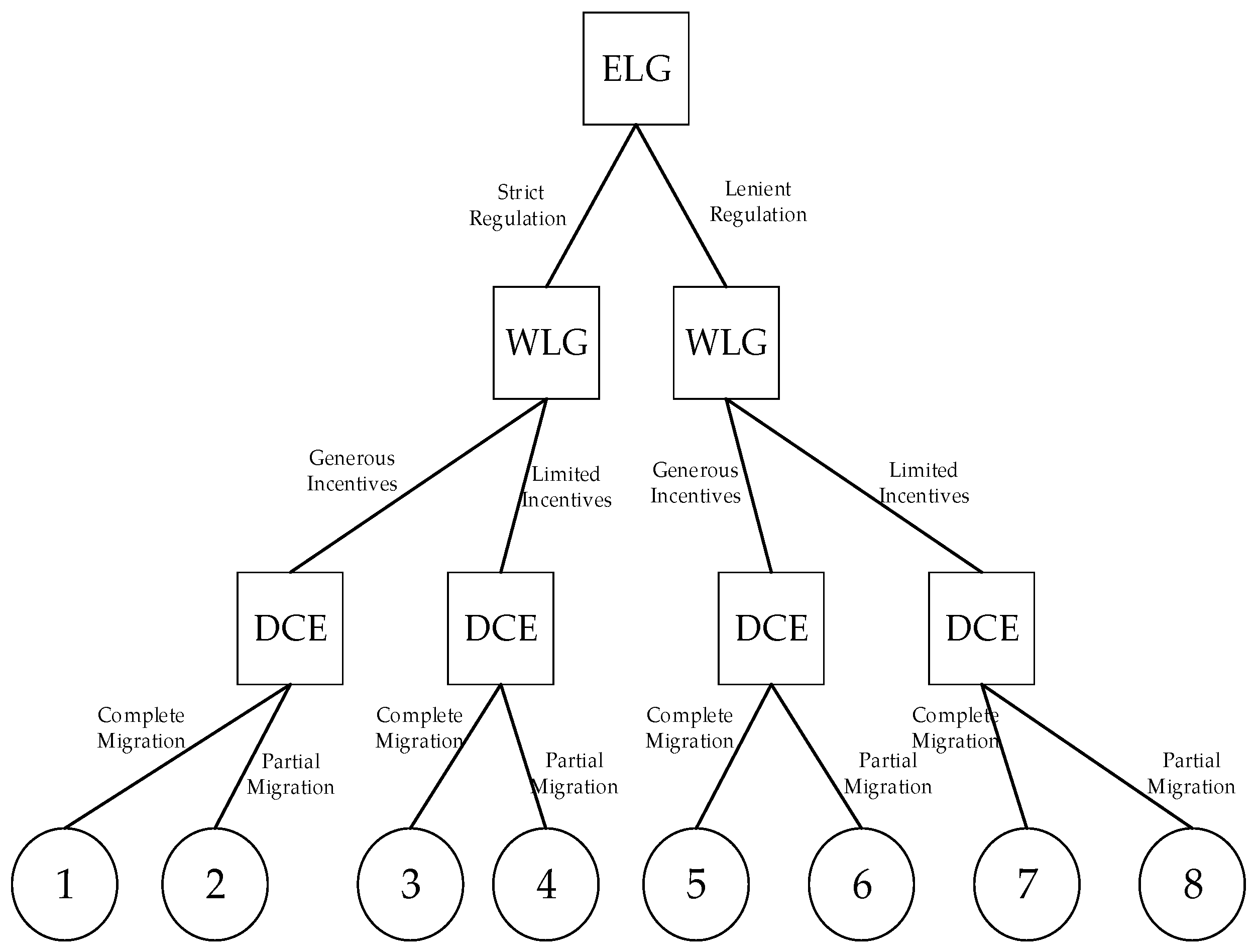 5.3.1. Impact of ELG and WLG’s Initial Willingness on DCE’s Migration Decision