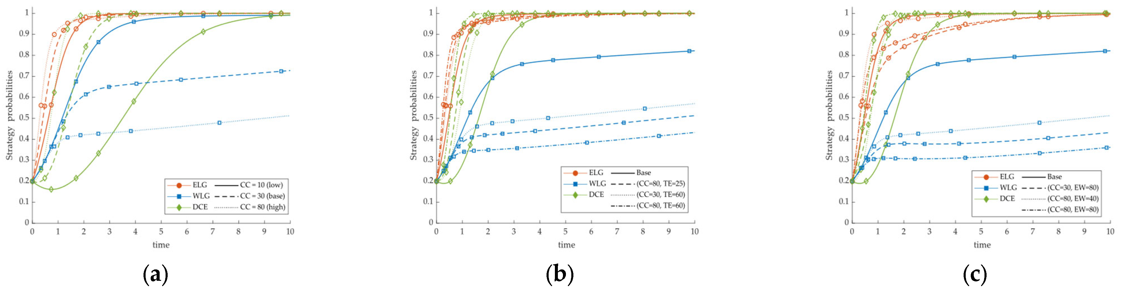 5.3.3. Impact of ELG and DCE’s Initial Willingness on WLG’s Incentive Decision