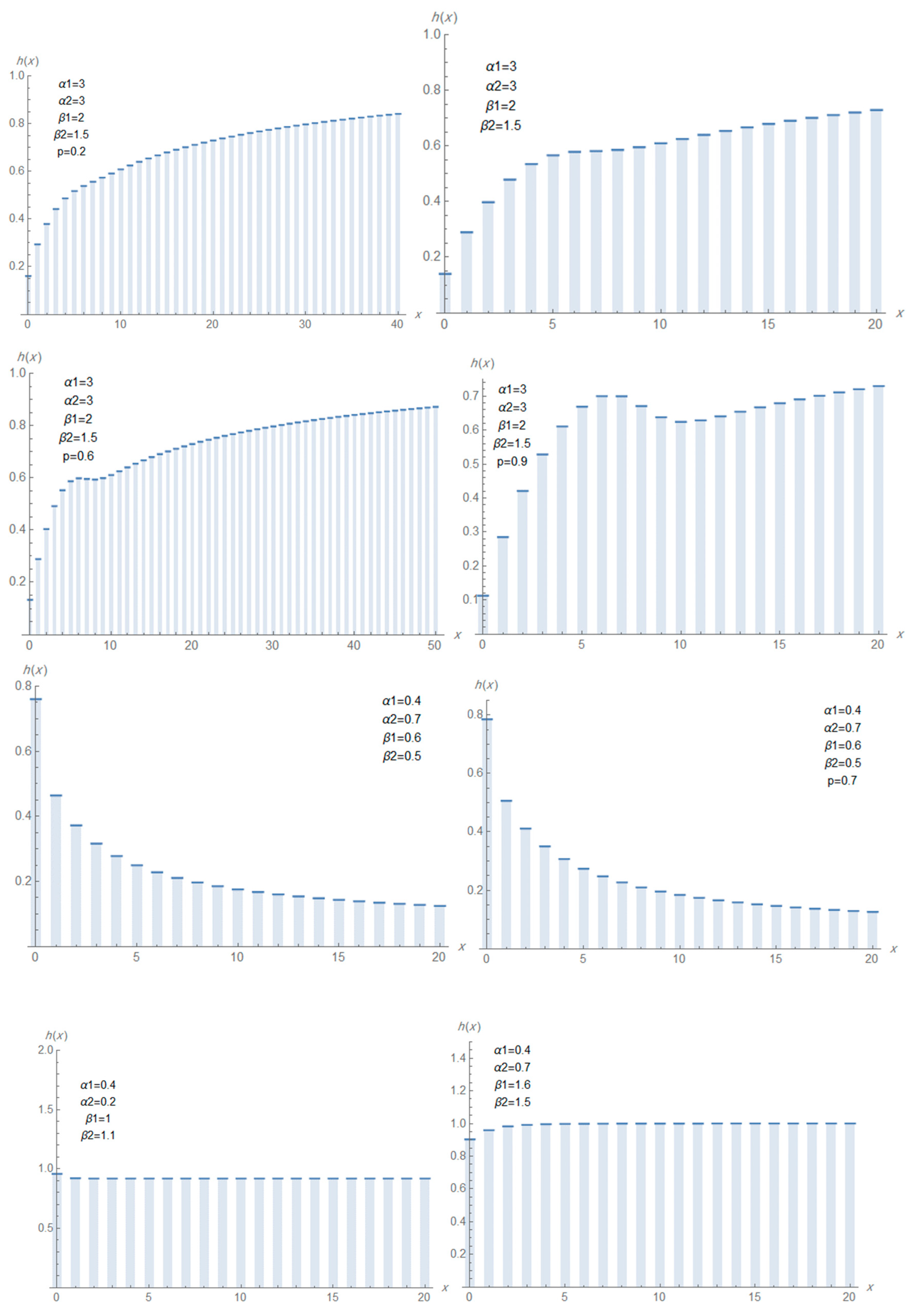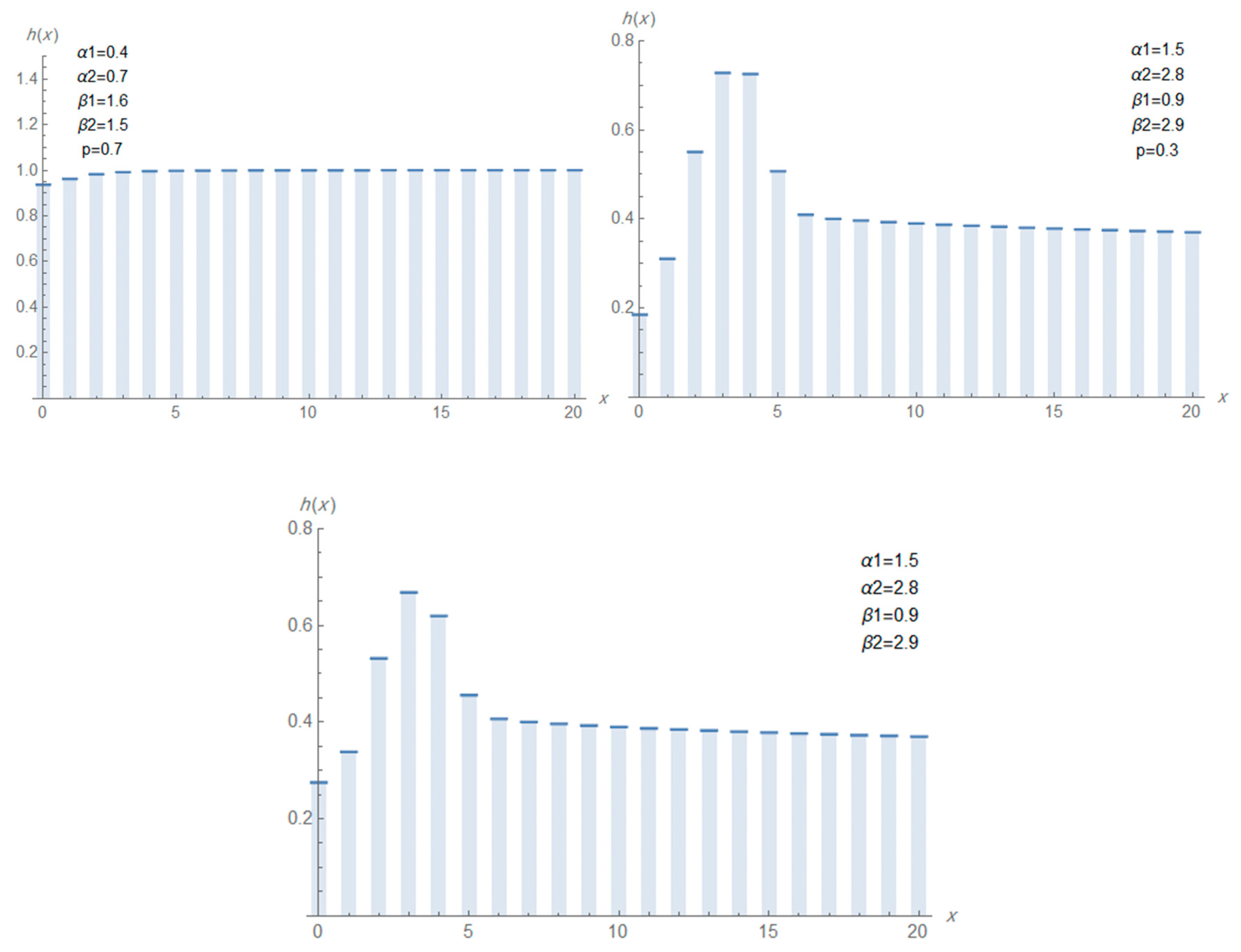 - Sarhan, A.M. A two-parameter discrete distribution with a bathtub hazard shape. Commun. Stat. Appl. Methods 2017, 24, 15–27. [Google Scholar] [CrossRef][Green Version]