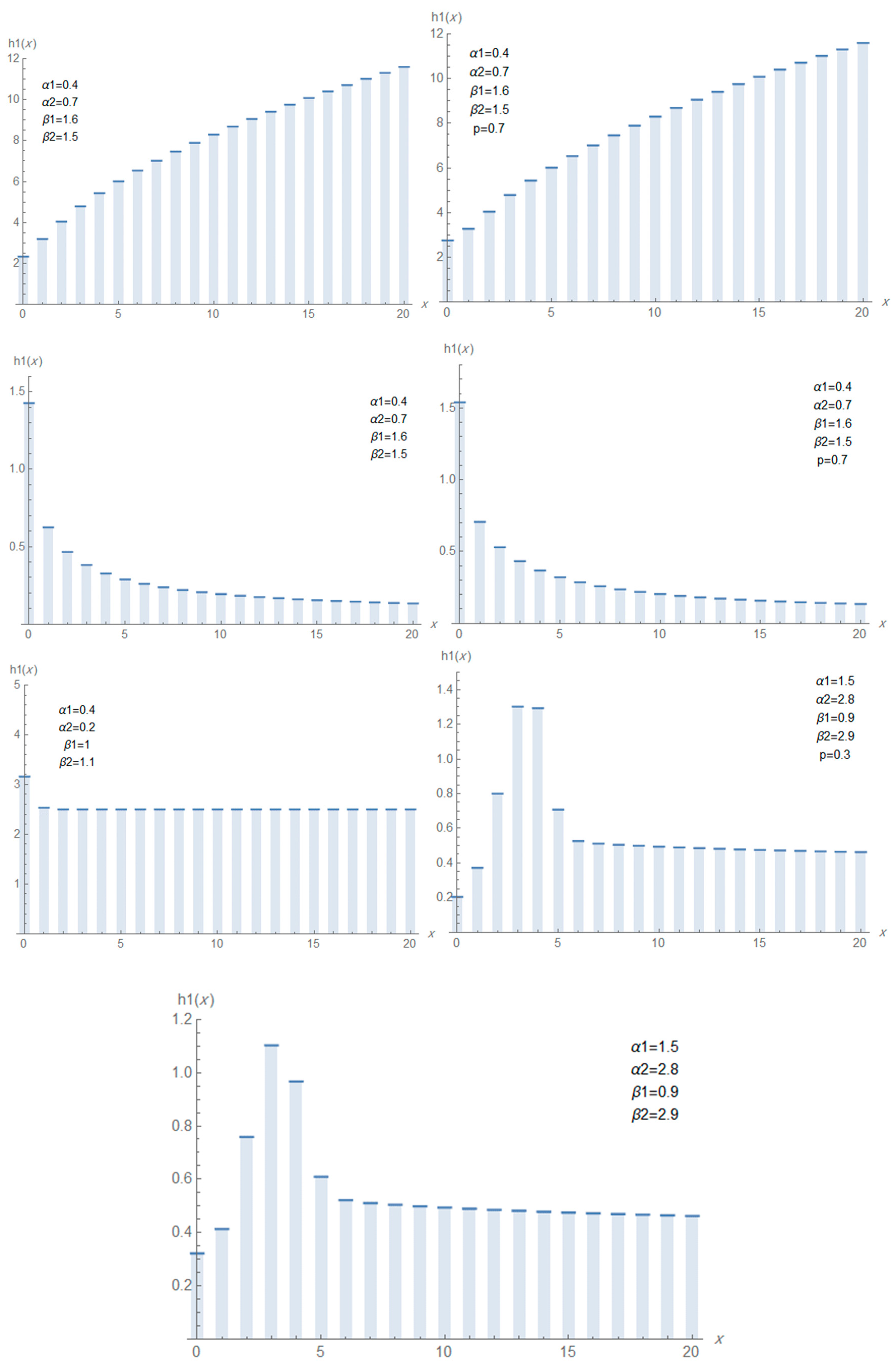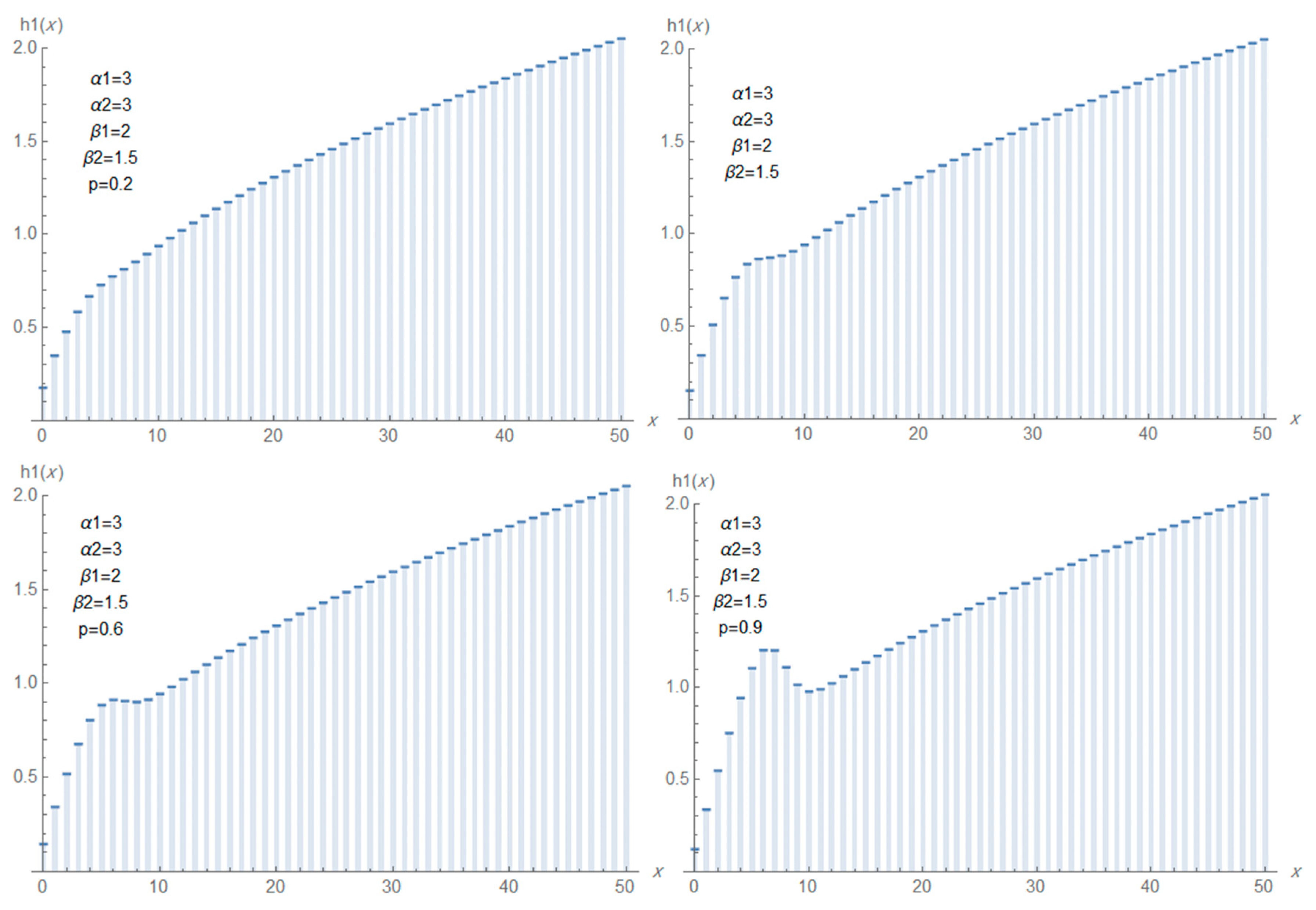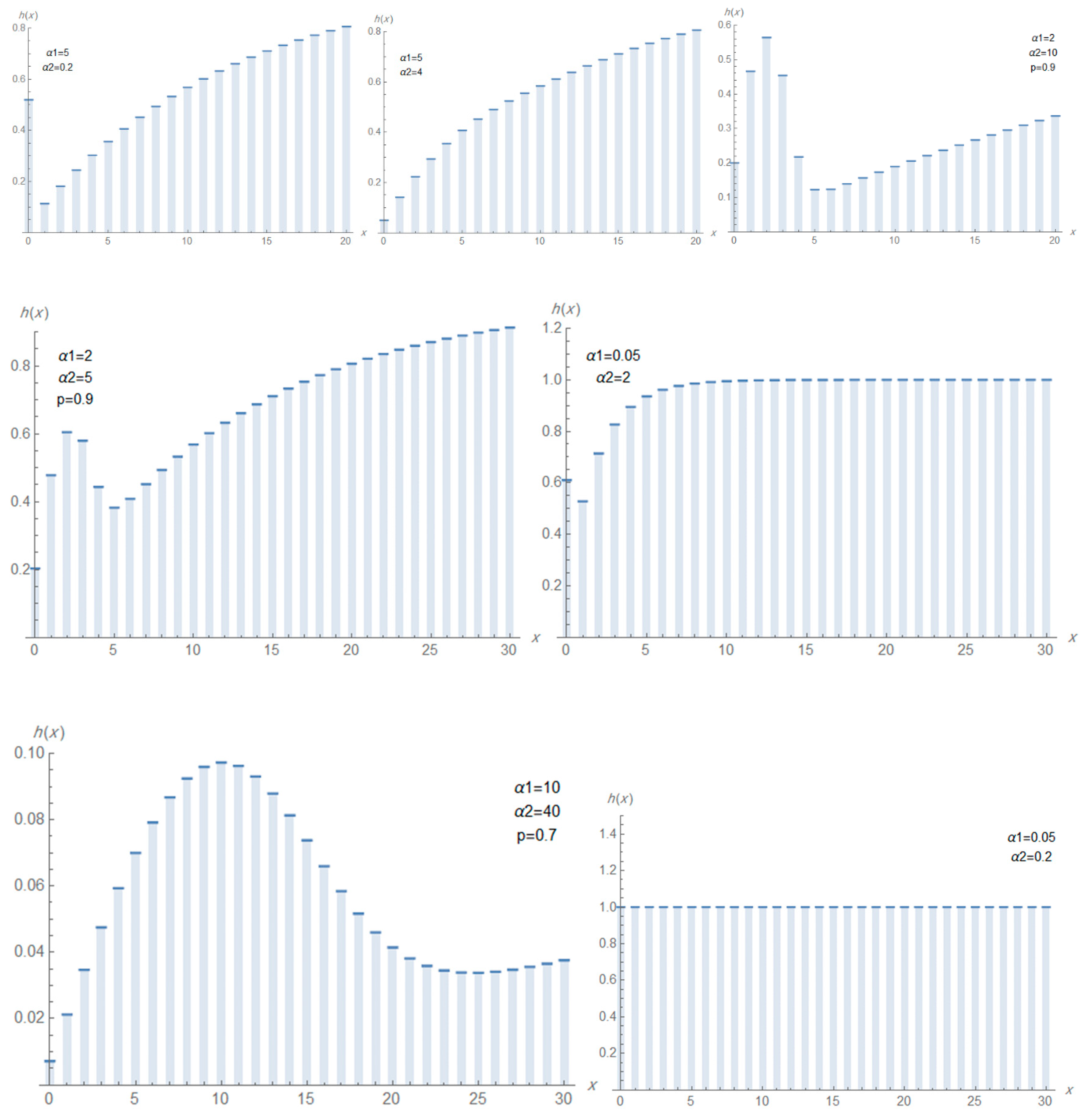 - Haj Ahmad, H. The efficiency of hazard rate preservation method for generating discrete Rayleigh–Lindley distribution. Mathematics 2024, 12, 1261. [Google Scholar] [CrossRef]