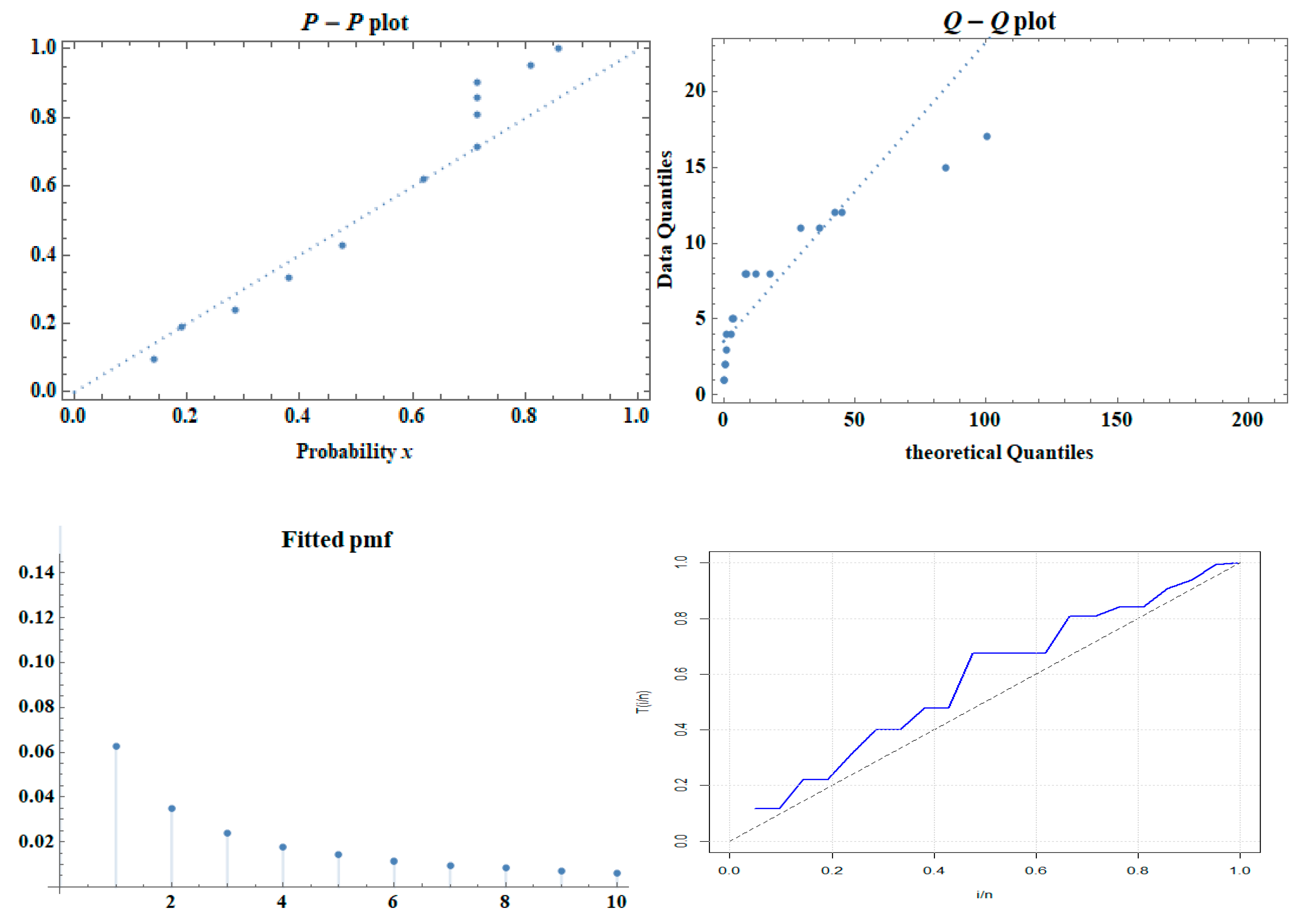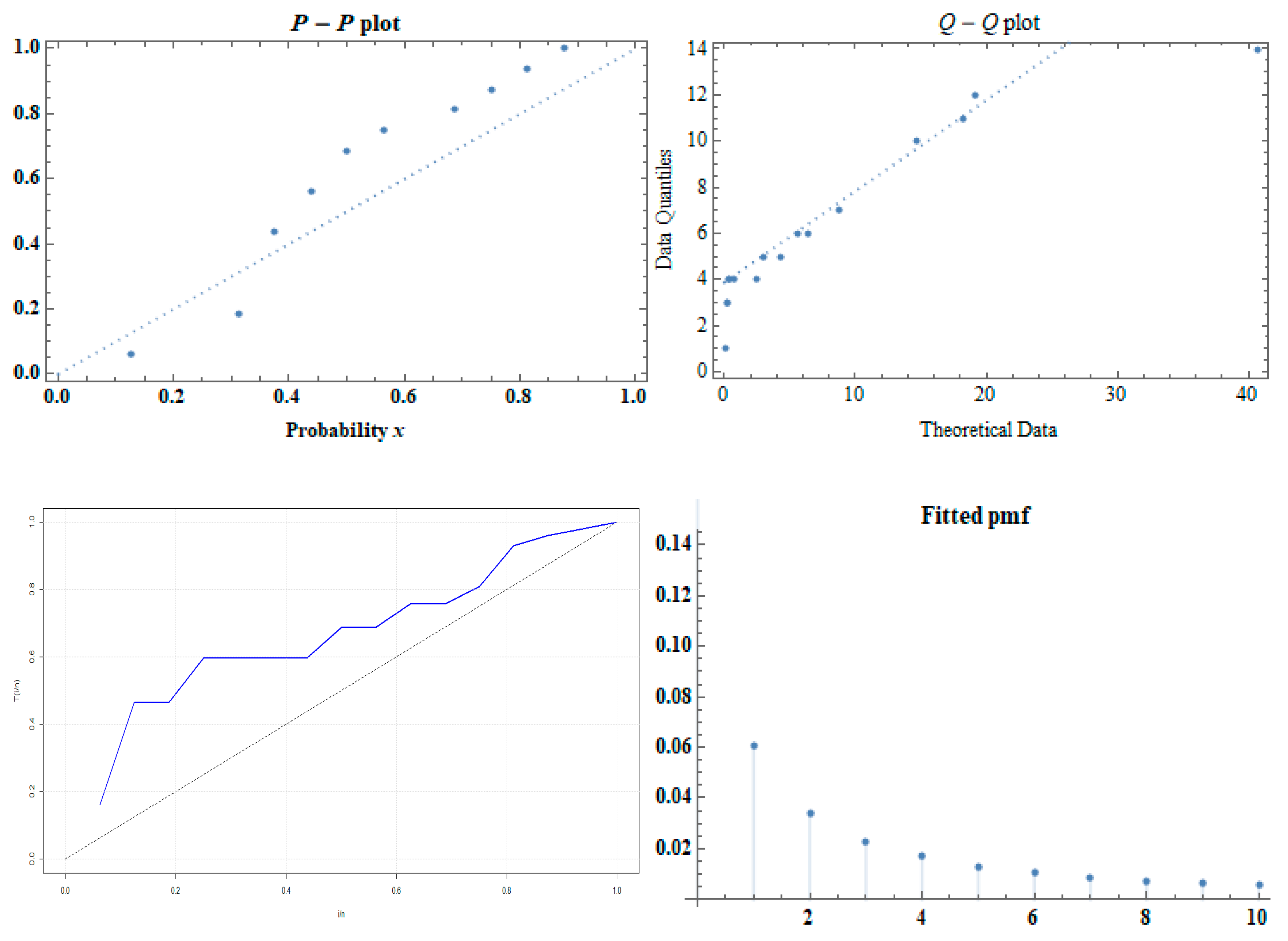 - Singh, B.; Agiwal, V.; Nayal, A.S.; Tyagi, A. A discrete analogue of Teissier distribution: Properties and classical estimation with application to count data. Reliab. Theory Appl. 2022, 17, 340–355. [Google Scholar] [CrossRef]
