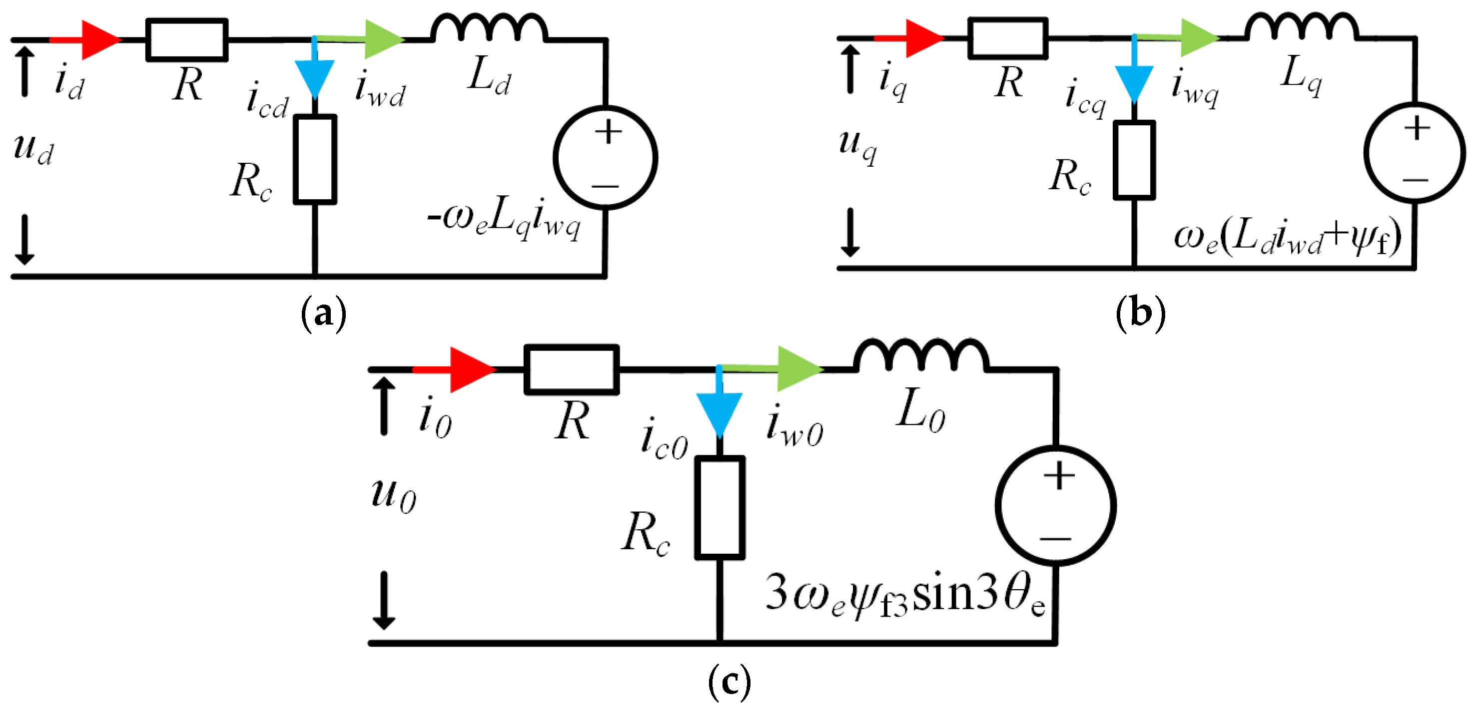 dq0-axis stator current. The motor equation under the OW-PMSM loss model can be expressed as follows:
