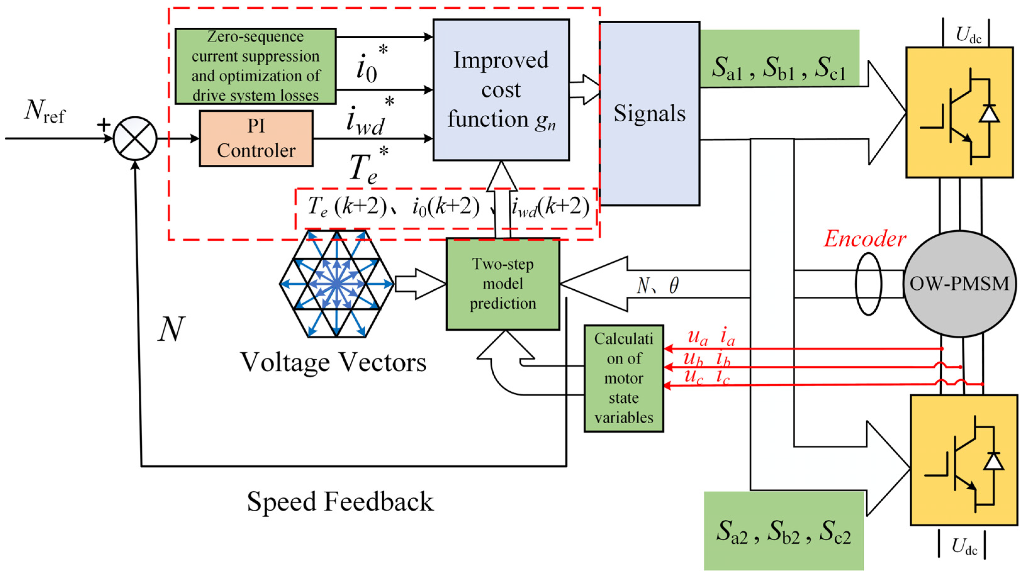 Figure 3, the OPT-MPTC control strategy can be briefly described as follows: the expected torque value is given by the speed outer loop PI controller; the expected value of zero-sequence current suppression is set to 0, and the expected value of the active current component
